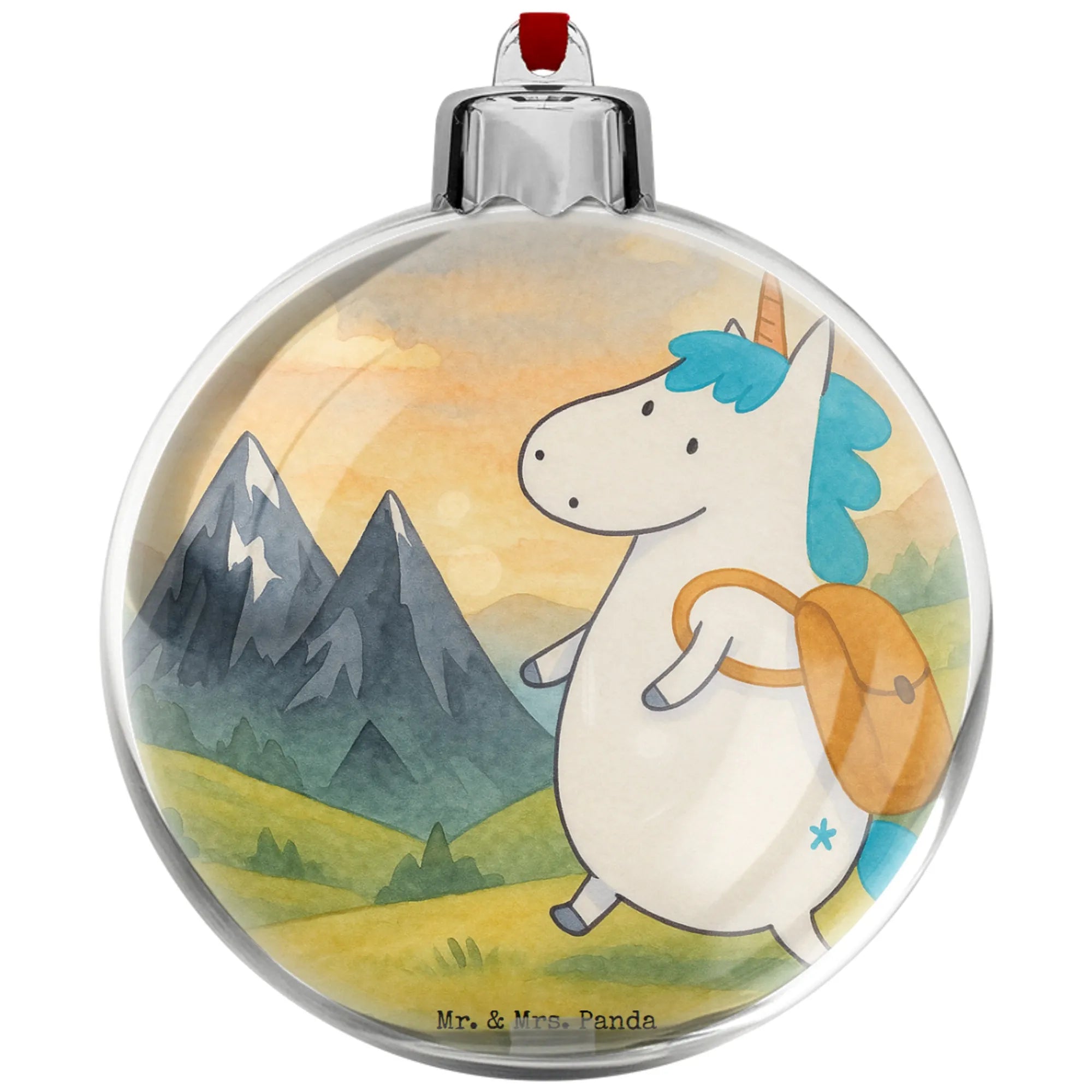 🐼 Transparente Weihnachtsbaumkugel mit rotem Band, bedruckt von Mr. & Mrs. Panda.