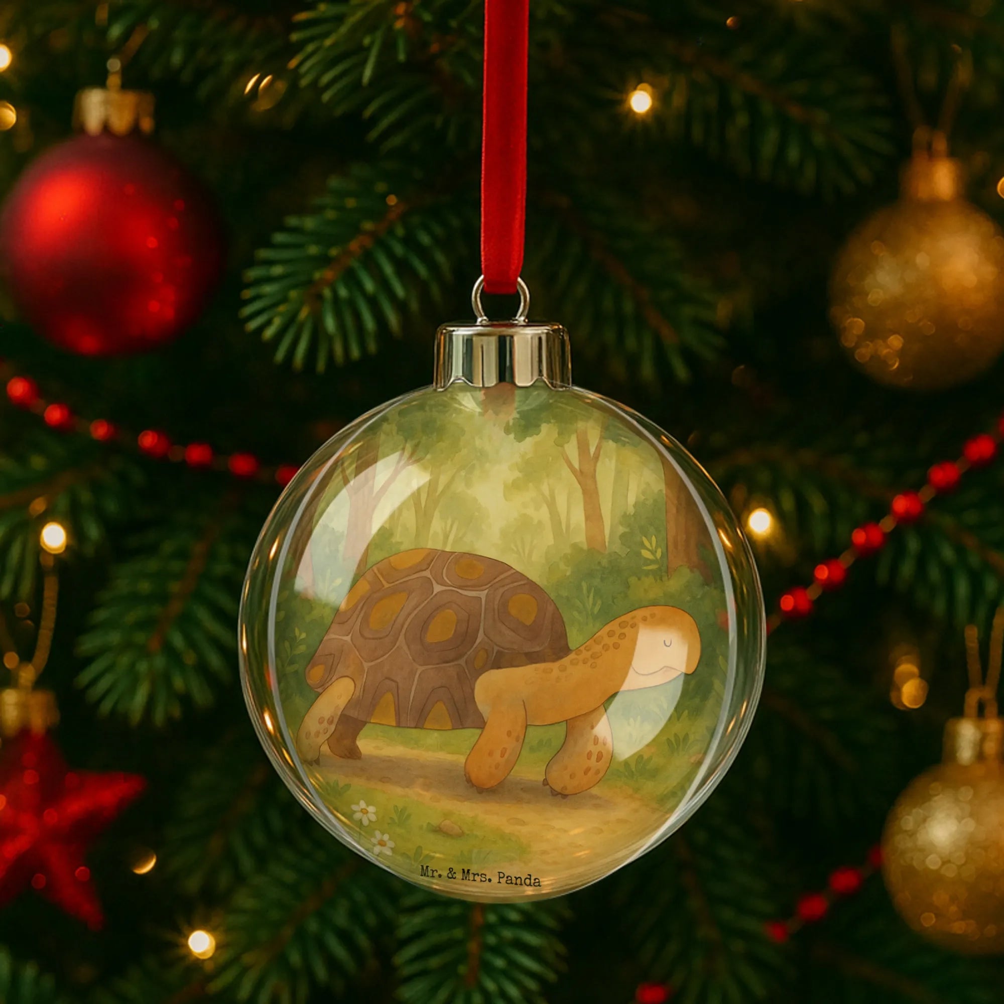 🐼 Transparente Weihnachtsbaumkugel mit rotem Band, bedruckt von Mr. & Mrs. Panda.