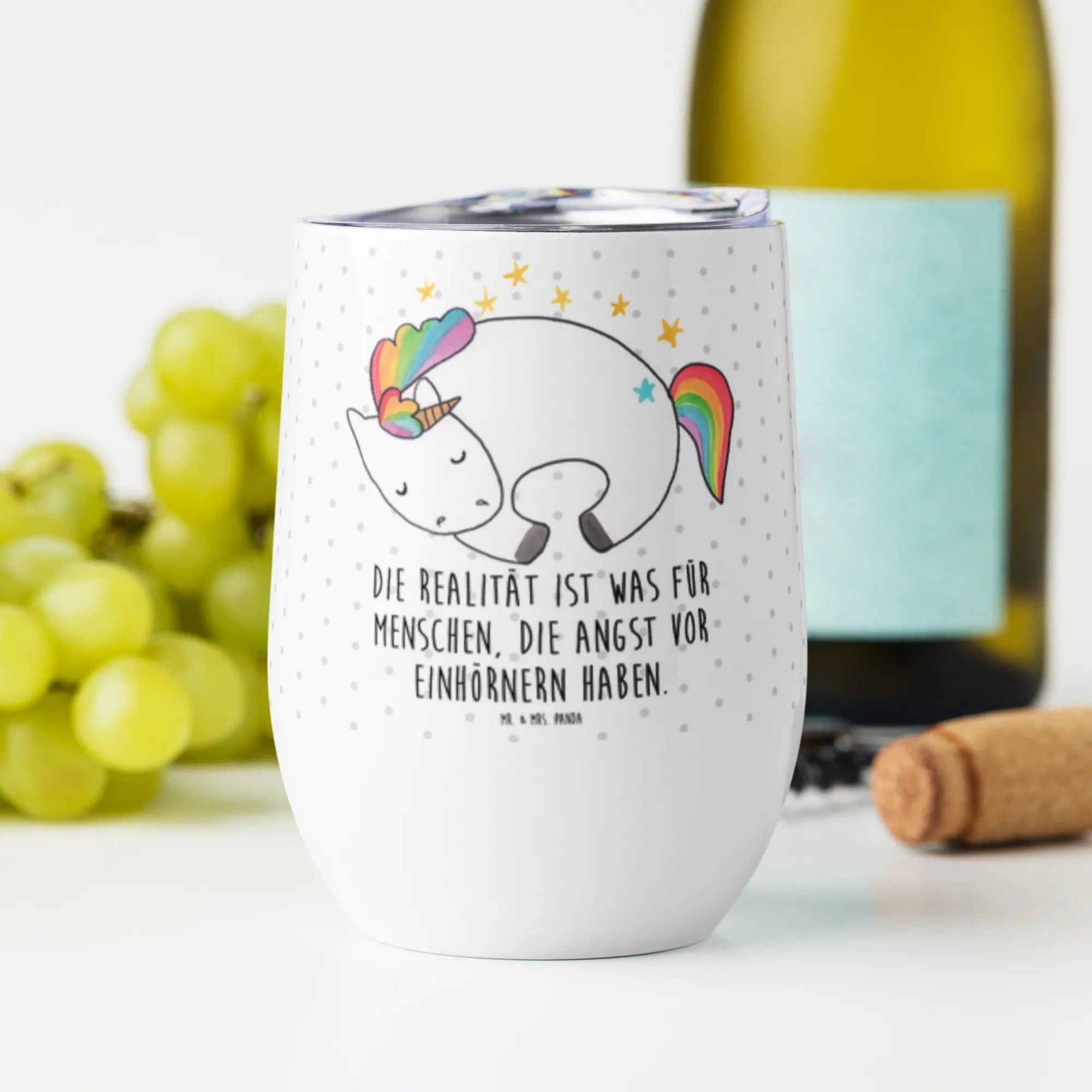 Entdecke den wunderschönen Weinbecher von Mr. & Mrs. Panda, der gleich mehrfach begeistert! Mit einer Kapazität von 375 ml und einer Größe von 120 mm × 375 ml ist er perfekt für ein Glas Wein unterwegs oder für dein Lieblingsgetränk zu Hause. Die doppelt gewonnene Vakuumdichtung hält dein Getränk bis zu 5 Stunden lang in der optimalen Temperatur – heiß oder kalt, ganz wie du es magst. Der hochwertige Edelstahl sorgt dafür, dass der Becher langlebig und unverwüstlich ist. Das geschwungene, einzigartige Design wird sicherlich alle Blicke auf sich ziehen und die wunderschönen Motive und Sprüche von Mr. & Mrs. Panda machen ihn zu einem echten Hingucker. Bestell dir einen für dich selbst oder verschenke ihn an einen lieben Menschen! Ein perfektes Geschenk für Weinliebhaber! Bitte beachte, dass der Becher nicht für die Spülmaschine oder Mikrowelle geeignet ist und nur von Hand gewaschen werden sollte.