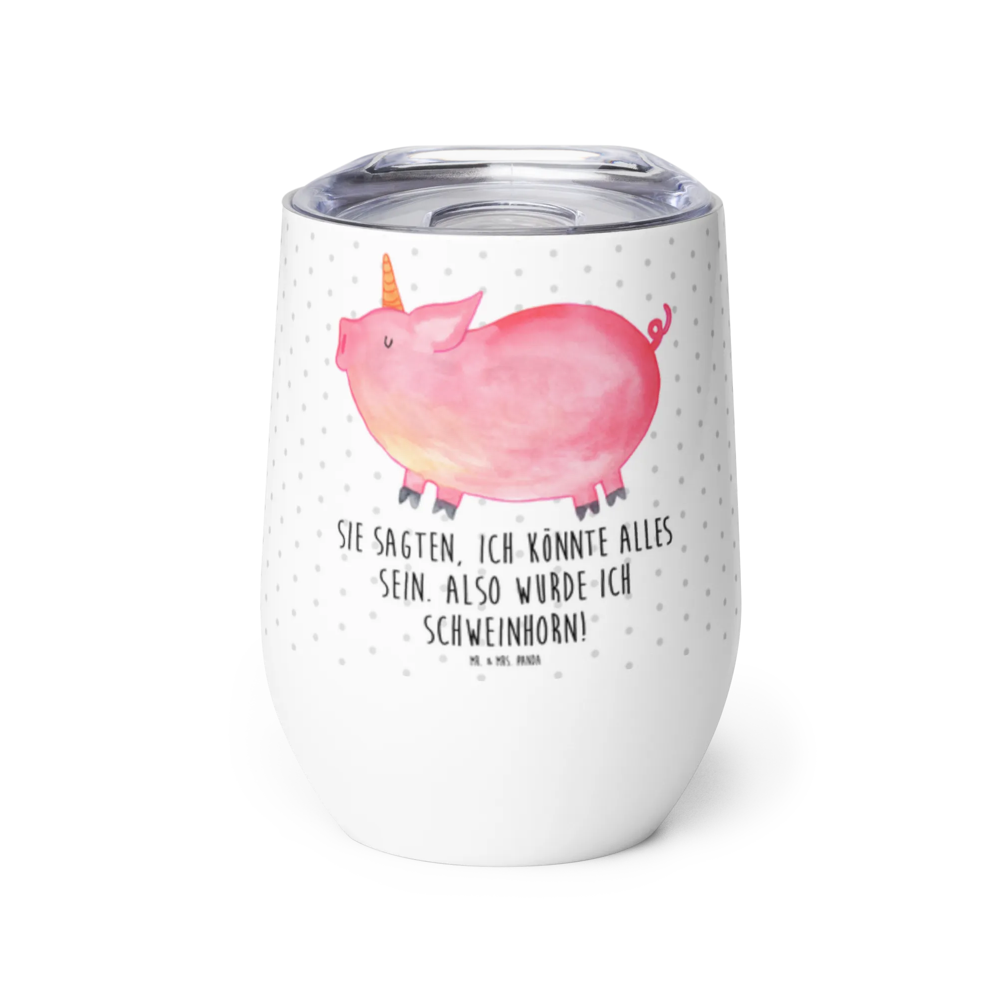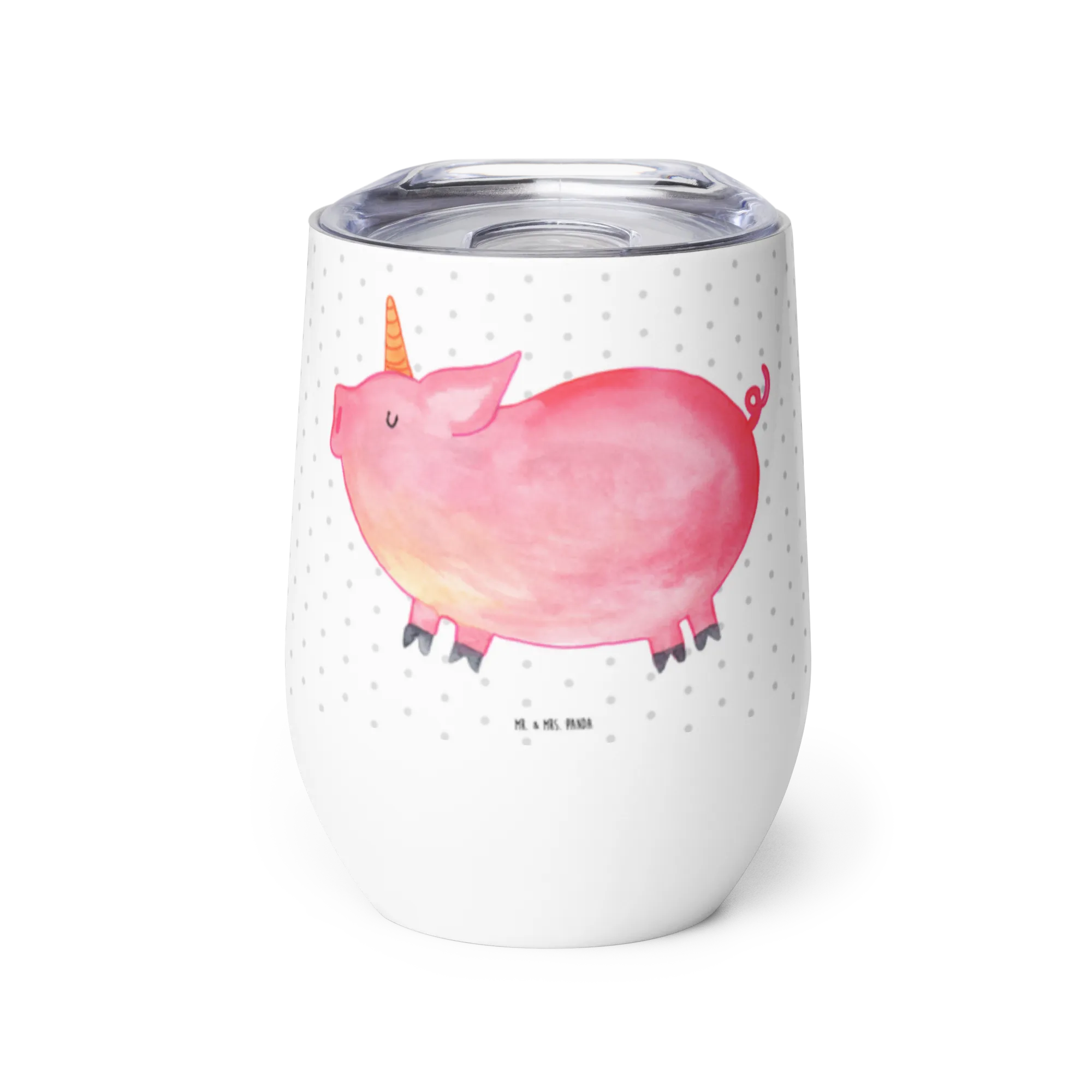 Der wunderschöne Weinbecher von Mr. & Mrs. Panda wird zum perfekten Begleiter für alle Glühweinfans und Weinliebhaber! Mit einem einzigartigen Design, das das witzige Schweinhorn darstellt, ist dieser Becher nicht nur ein wunderschöner Anblick, sondern auch extrem praktisch.