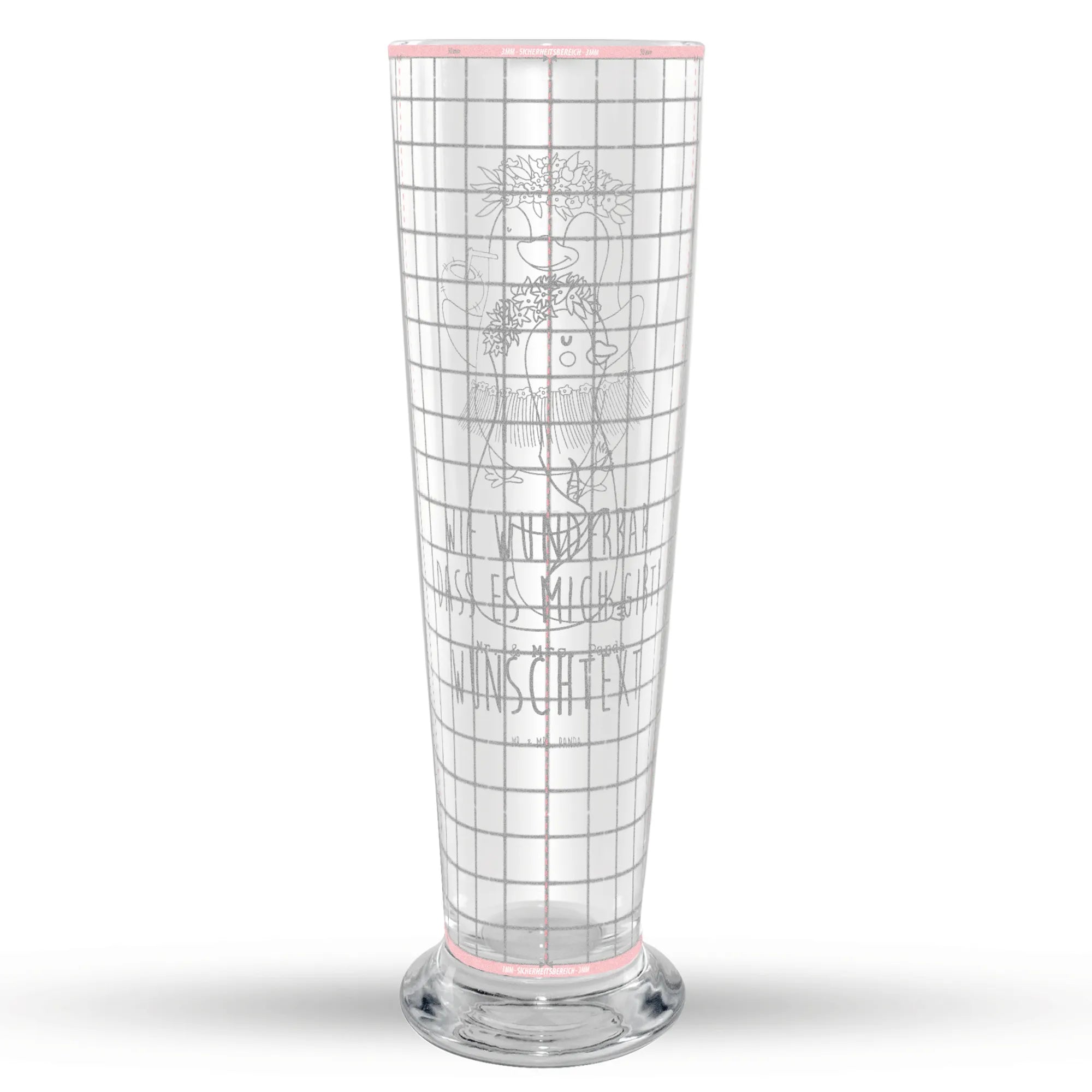 Weizenglas Personalisierbar Pinguin Blumen – Mr. & Mrs. Panda