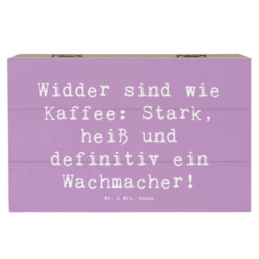 Du suchst nach dem perfekten Geschenk für einen Widder oder einen astrologiebegeisterten Freund? Dann ist die wunderschöne Holzkiste von Mr. & Mrs. Panda genau das Richtige! Jede Kiste ist aus hochwertiger, robuster Holzfaser gefertigt und trägt das wunderschöne Widder-Motiv, das mit dem spritzigen Spruch "Widder sind wie Kaffee: Stark, heiß und definitiv ein Wachmacher!" verziert ist.