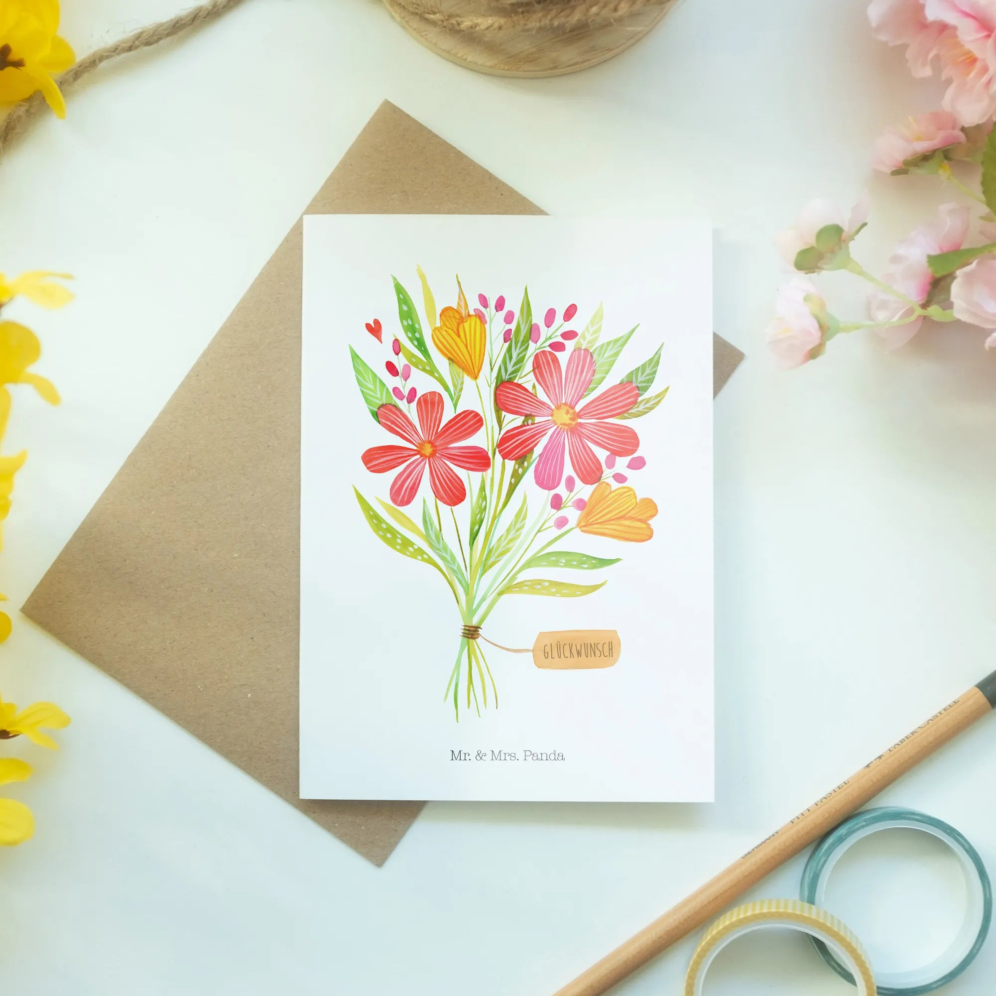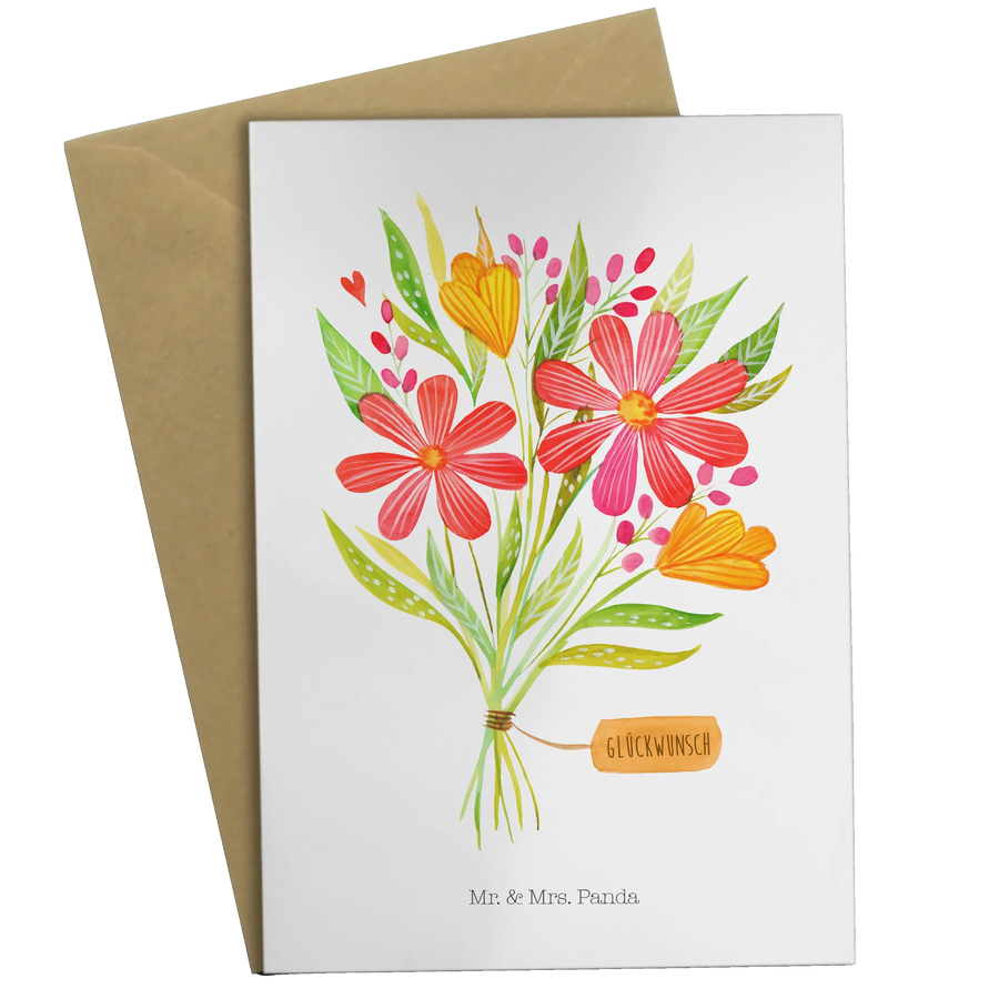 Bist du immer auf der Suche nach dem perfekten Geschenk für einen besonderen Menschen? Dann bist du mit der zauberhaften Grußkarte Blumenstrauß aus der Collection Wild & Free von Mr. & Mrs. Panda genau richtig! Diese wunderschöne und einzigartige Klappkarte zeigt ein liebevoll handgezeichnetes Blumenmotiv, das nicht nur die Herzen von Naturliebhabern höher schlagen lässt, sondern auch jede Botschaft mit einem Hauch von Frühlings- und Sommerzauber verzaubert.