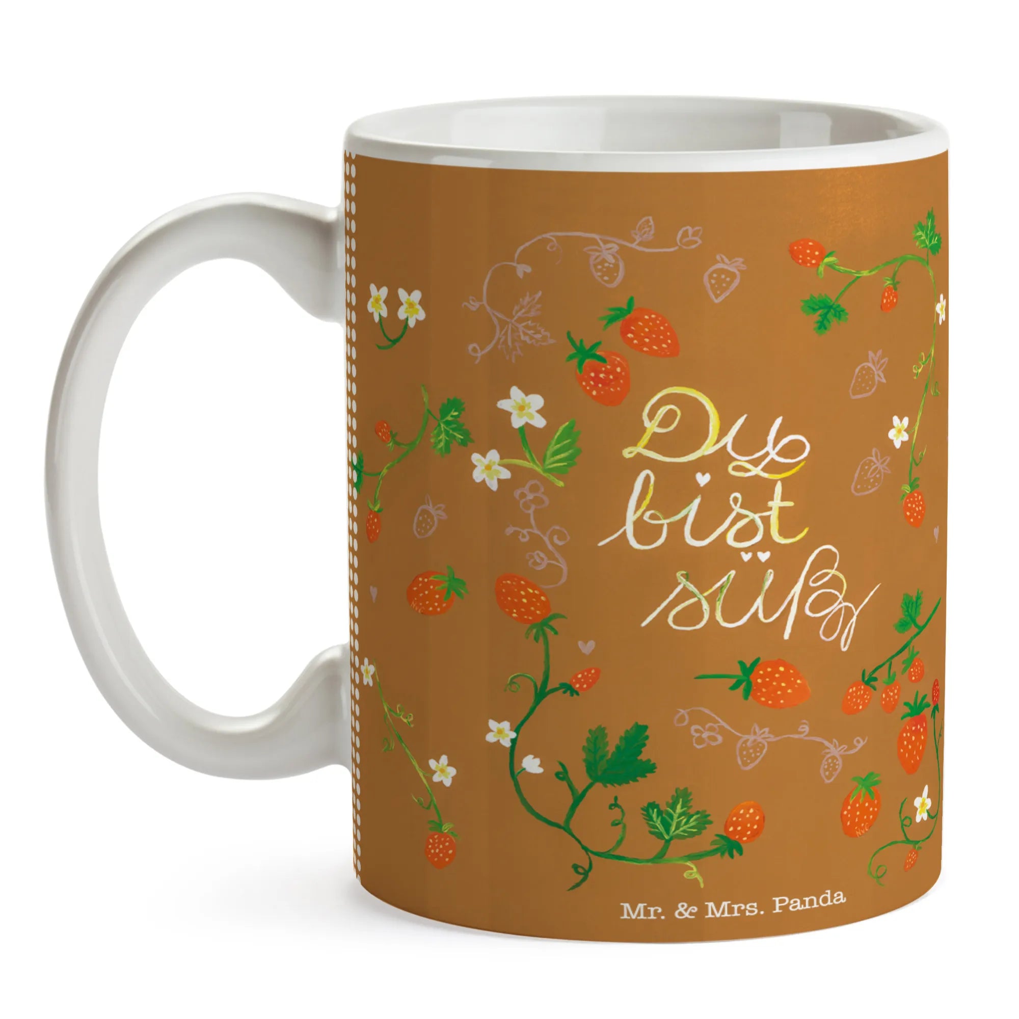 Die Tasse "Erdbeeren Du bist süß" aus der Wild & Free-Kollektion von Mr. & Mrs. Panda ist das perfekte Geschenk für alle, die eine Leidenschaft für die Natur und liebevolle Botschaften haben.