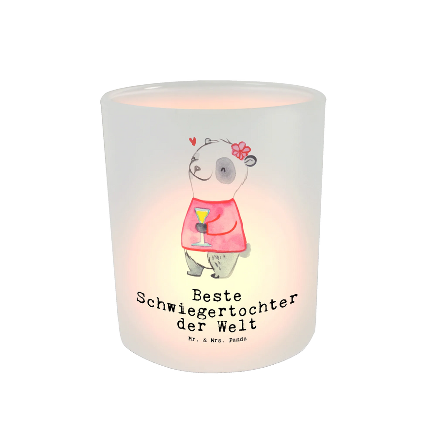 Das Windlicht "Beste Schwiegertochter der Welt" von Mr. & Mrs. Panda ist das perfekte Geschenk für deine liebsten Schwiegertöchter. Ob zum Geburtstag, zur Hochzeit oder einfach als Dankeschön – dieses zarte Teelichtglas bringt mit seinem liebevollen Panda-Motiv und dem süßen Spruch eine gemütliche und romantische Stimmung in jedes Zuhause.