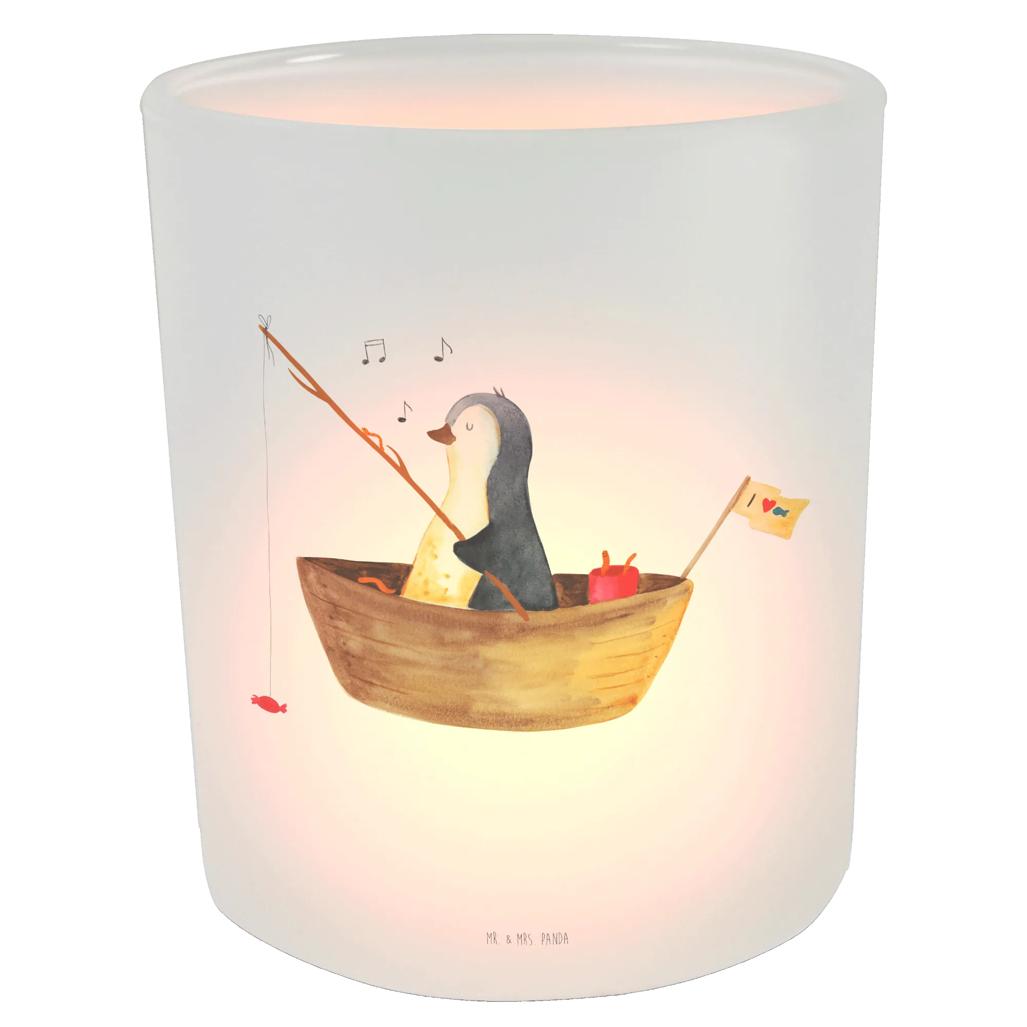 Mit dem niedlichen Motiv eines Pinguins auf einem kleinen Angelboot, der mit Bonbons angelt, zaubert es jedem ein Lächeln ins Gesicht. Ob für das eigene Zuhause oder als liebevolles Geschenk zur Hochzeit, zur Feier eines Neustarts oder einfach um jemandem ein wenig Freude zu schenken - dieses Windlicht sorgt für eine gemütliche und romantische Atmosphäre.