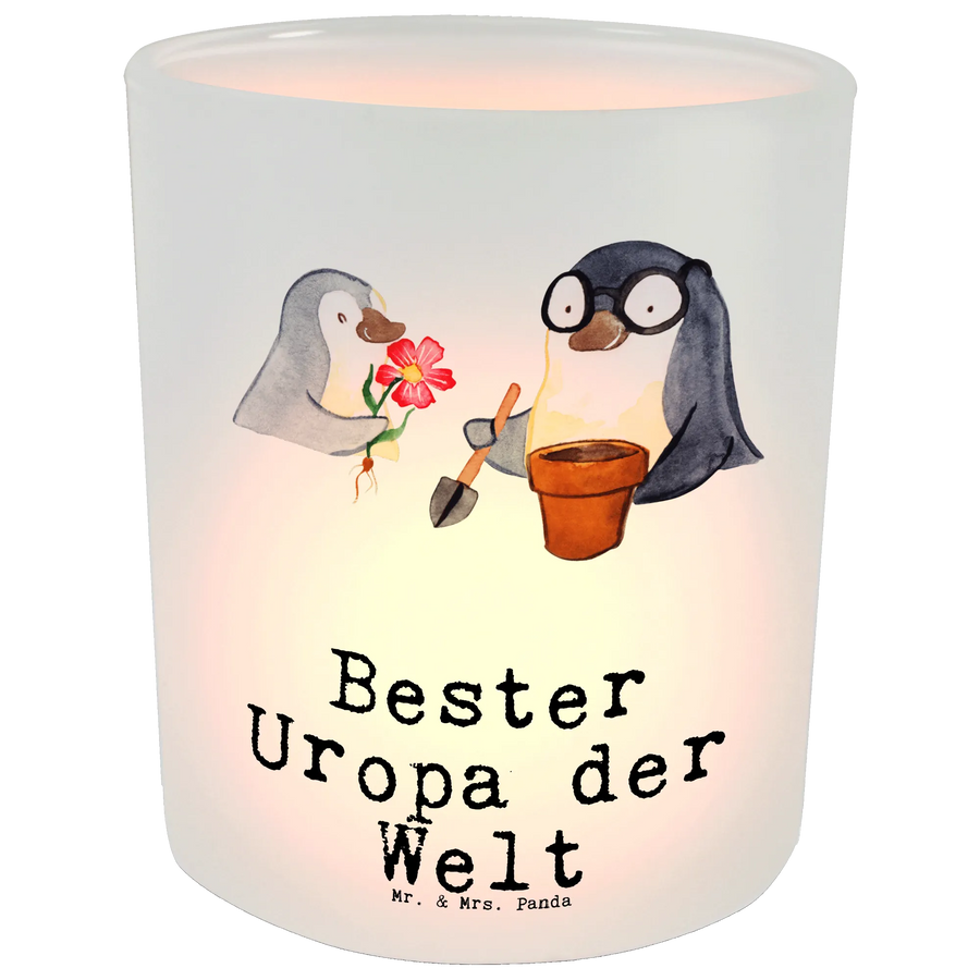 Ein wunderschönes, edles Windlicht von Mr. & Mrs. Panda, das dein Herz höher schlagen lässt! Dieses zauberhafte Windlicht mit dem liebevollen Motiv "Pinguin Bester Uropa der Welt" aus der Collection Beziehungen ist das perfekte Geschenk für alle, die ihren Uropa schätzen.