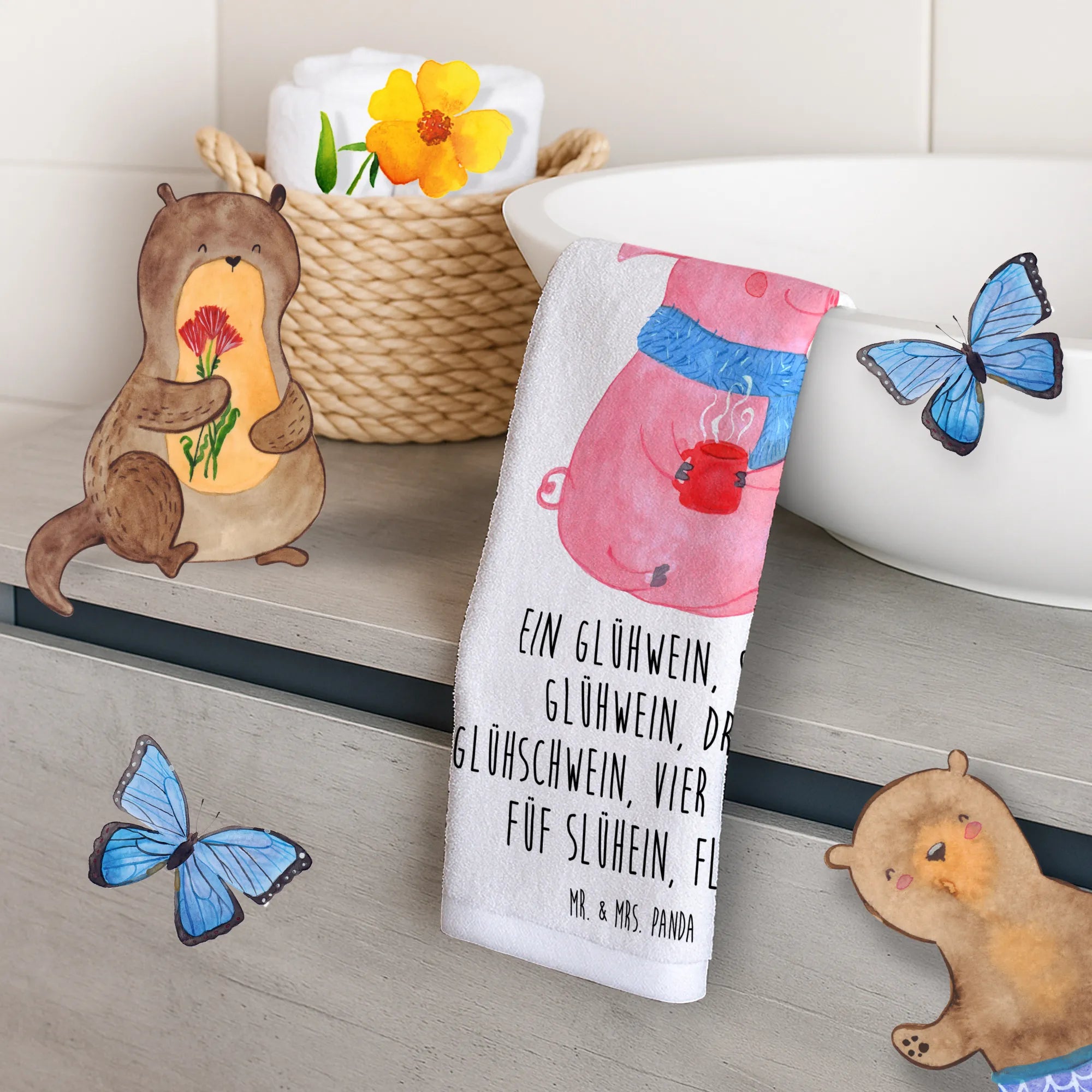 Das perfekte Geschenk für die kalte Winterzeit - unser Gästehandtuch "Lallelndes Glühschwein" aus der Winter Kollektion von Mr. & Mrs. Panda begeistert mit einem fröhlichen Motiv, das jedem ein Lächeln ins Gesicht zaubert.