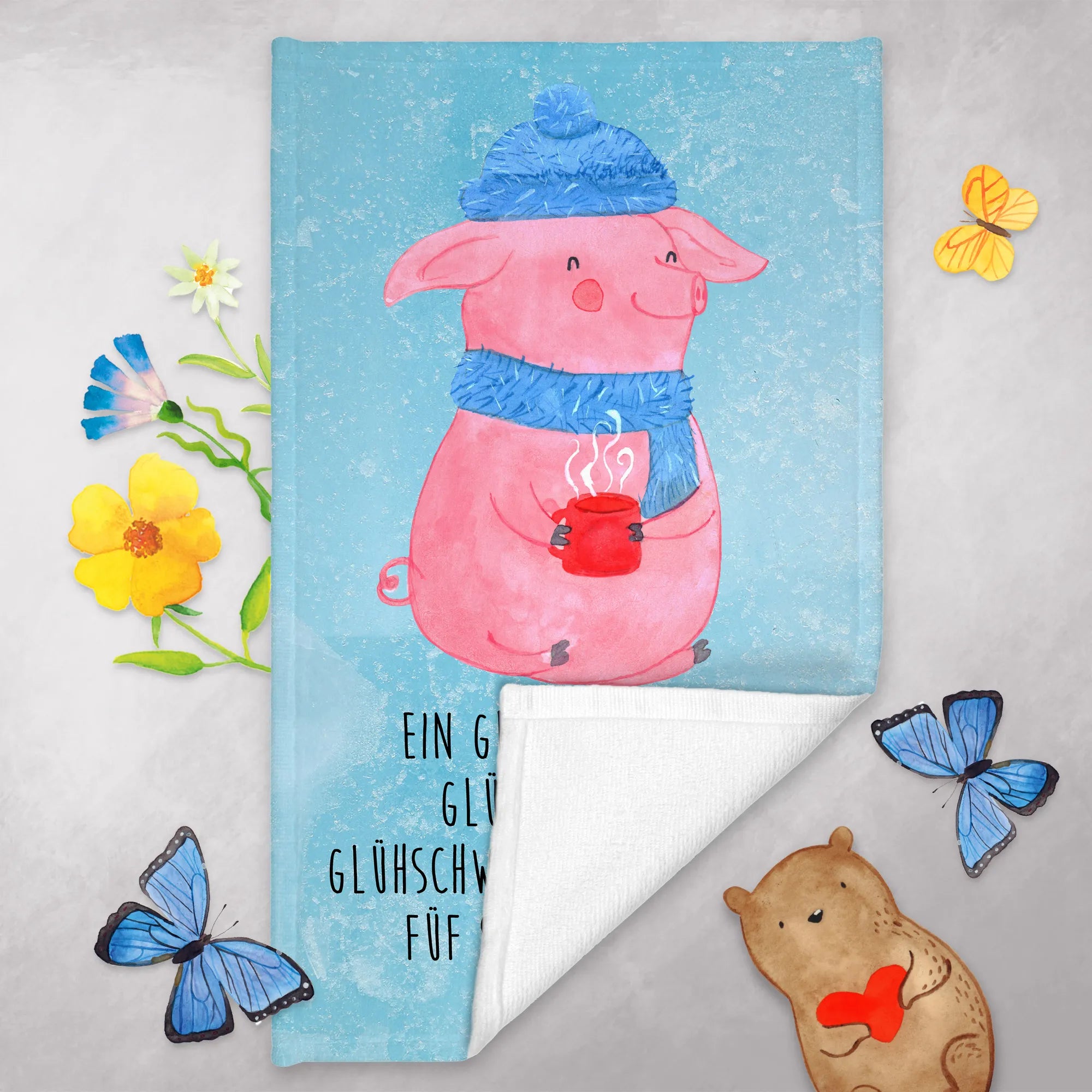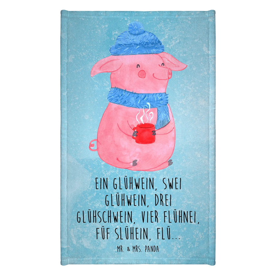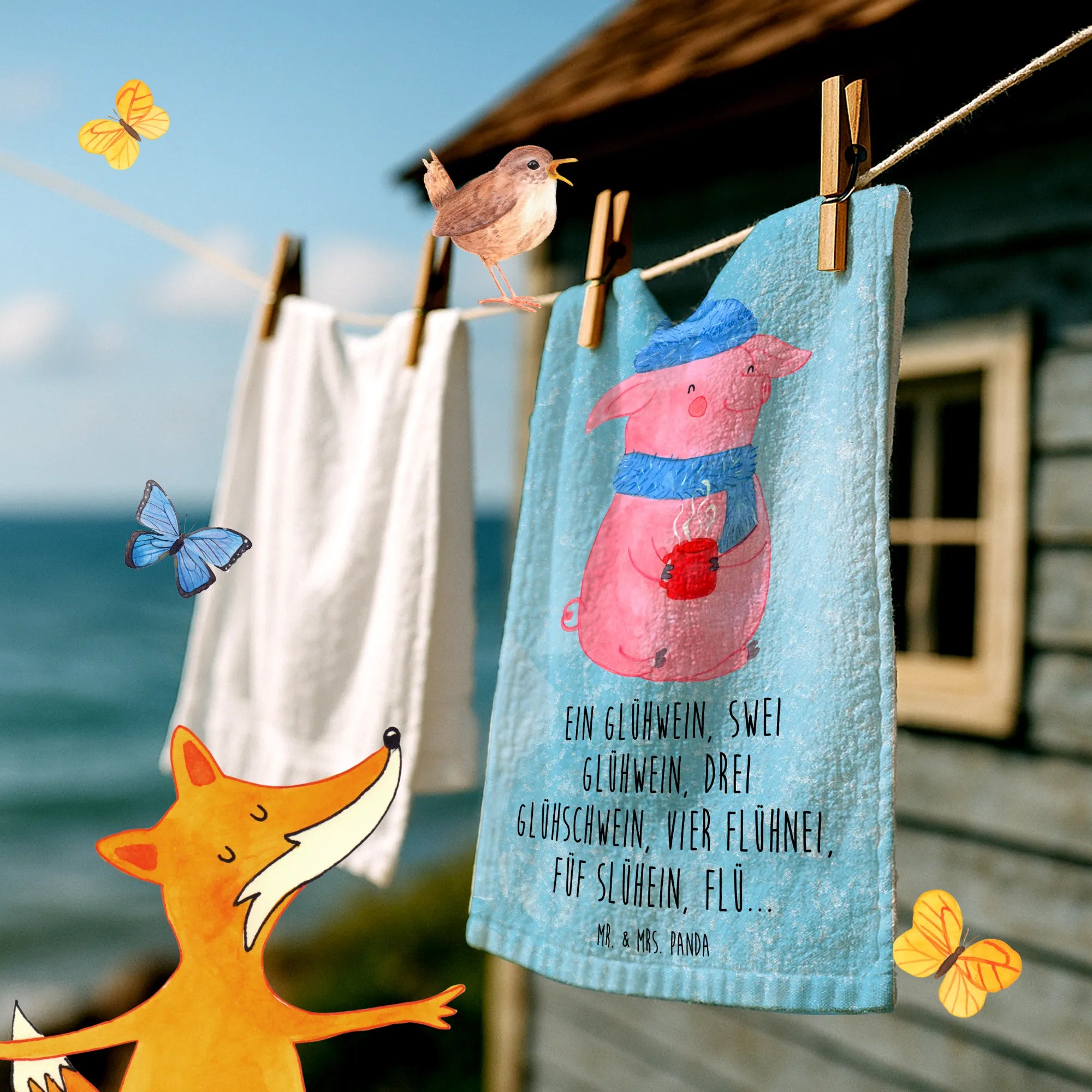 Gästehandtuch Schweinchen Glühwein - mit Spruch - Eisblau