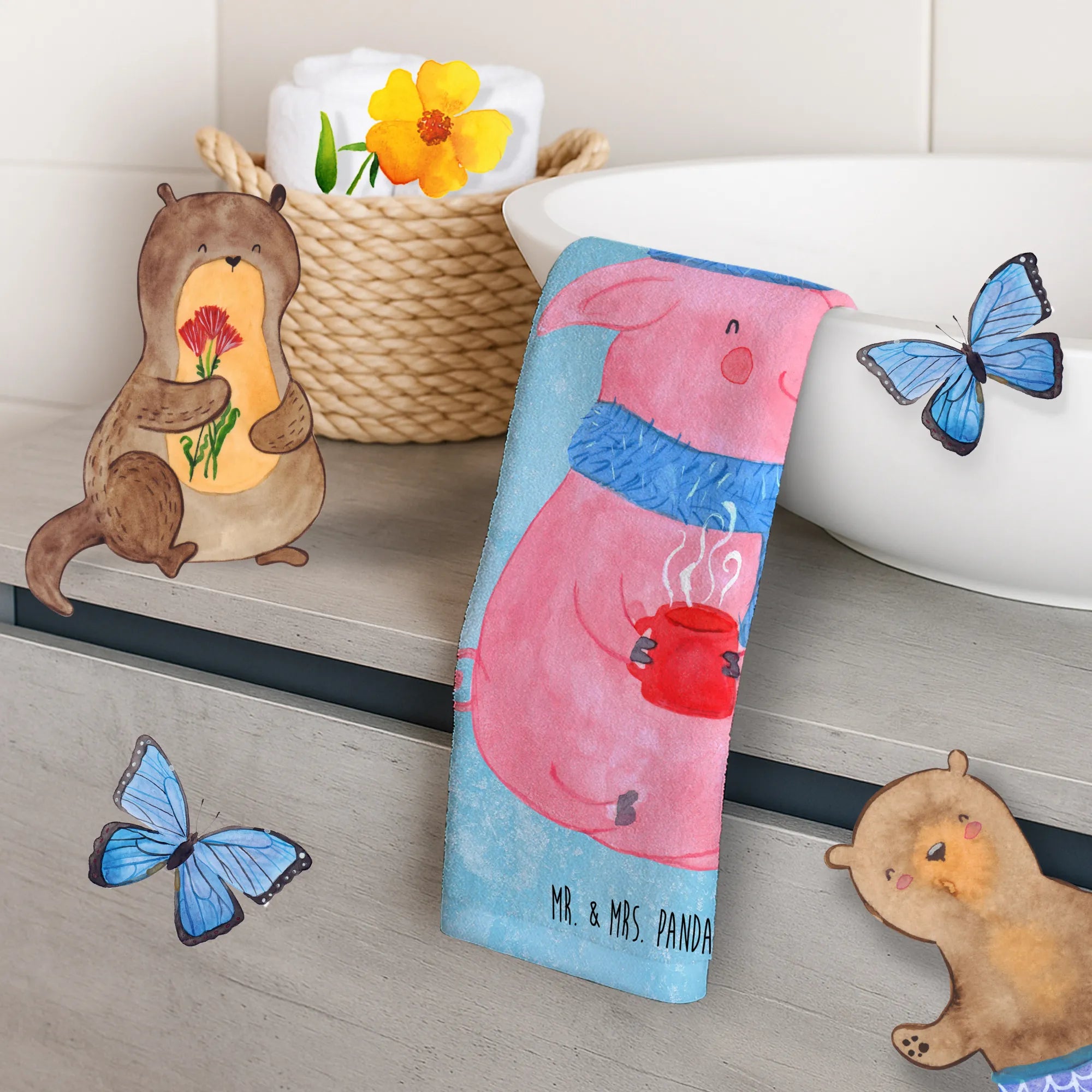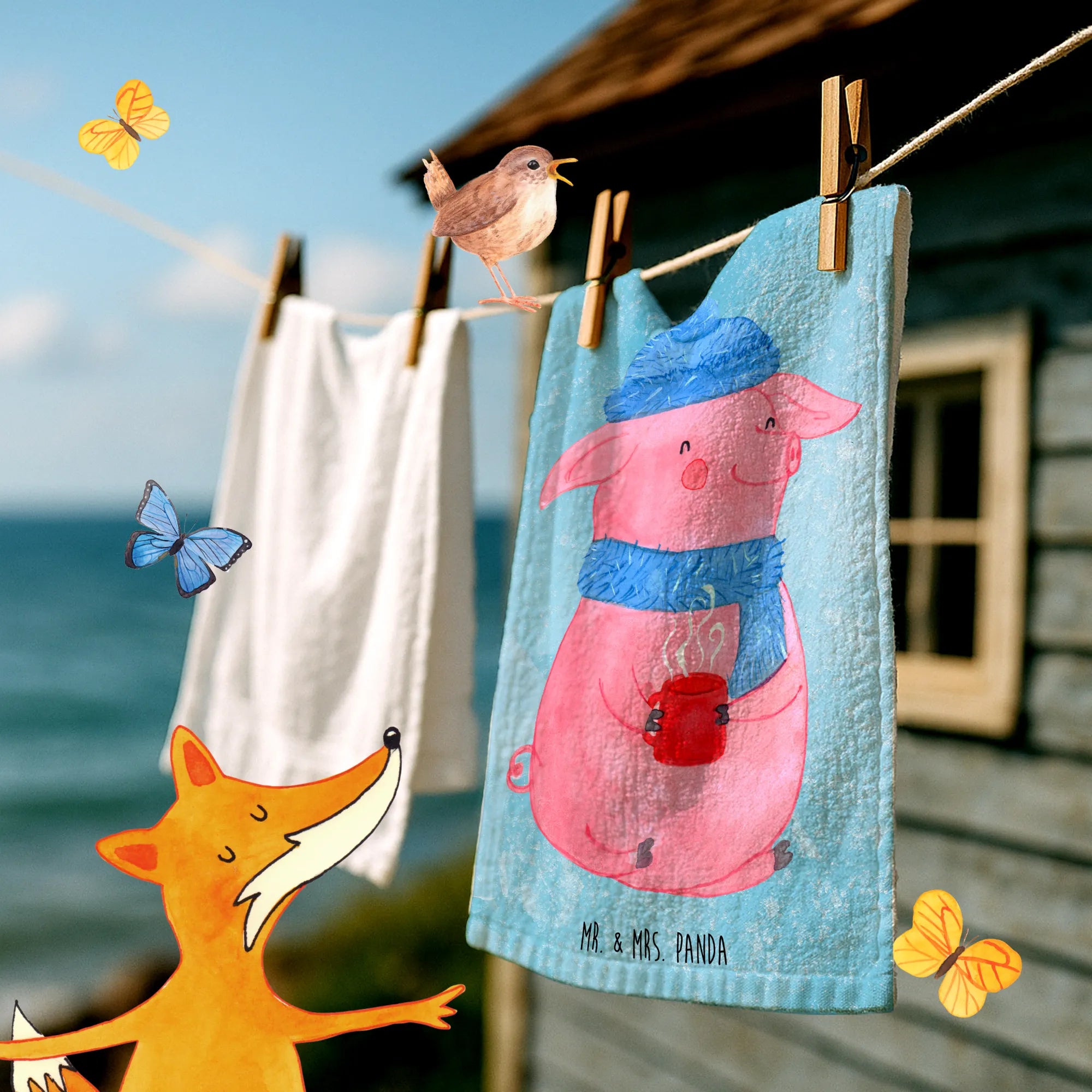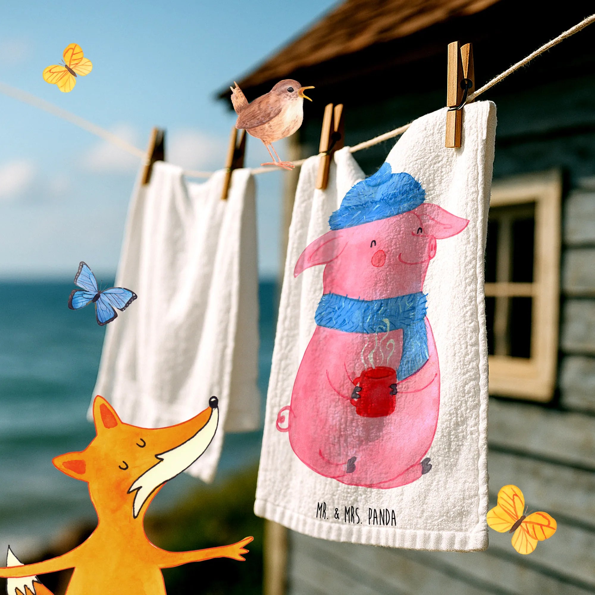 Das Gästehandtuch "Lallelndes Glühschwein" von Mr. & Mrs. Panda ist das perfekte Geschenk für die bevorstehenden Winter- und Weihnachtsfeiertage. Mit einem fröhlichen, winterlich gekleideten Schwein, das eine dampfende Tasse Glühwein hält, bringt dieses Handtuch sofort gute Laune in jedes Badezimmer. Ob für die Familie, Freunde oder als Mitbringsel zu einer Feier – dieses Gästehandtuch vereint Praktikabilität mit einem liebevollen Design.