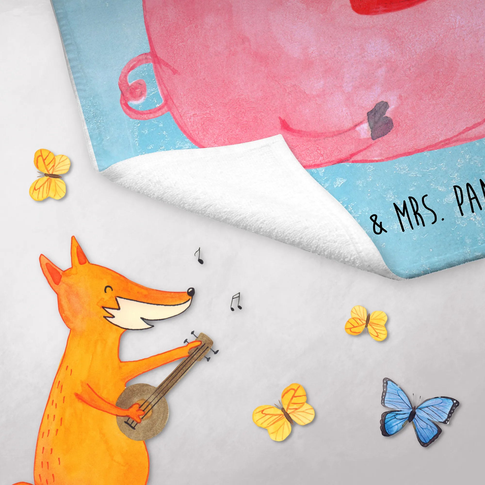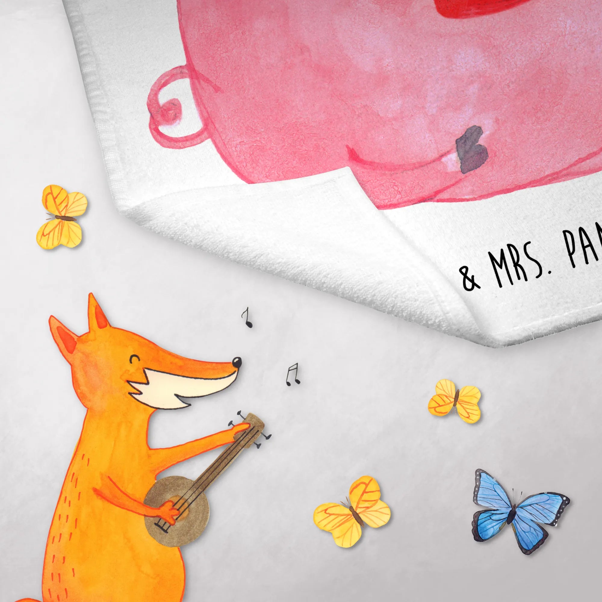 Verleihe deinem Badezimmer mit dem bezaubernden Gästehandtuch von Mr. & Mrs. Panda einen fröhlichen Akzent! Mit den Maßen von 300 mm x 500 mm und aus einer flauschigen Baumwollmischung gefertigt, ist dieses Frotteetuch nicht nur schön anzusehen, sondern auch unglaublich praktisch. Die hochwertigen Drucke in lebendigen Farben machen es zu einem echten Blickfang! Das leichte Design mit einem Gewicht von nur 60 g macht es leicht zu handhaben, jedoch ist es dennoch super saugfähig und perfekt für dein Gästebad oder Badezimmer. Der allseitige Saum mit Doppelnaht sorgt für zusätzliche Strapazierfähigkeit und Langlebigkeit. Die Pflege ist unkompliziert, denn du kannst es bei 30°C in der Waschmaschine waschen und im Trockner bei niedrigen Temperaturen trocknen. Mit diesem Handtuch verwandelst du dein Badezimmer in eine kleine Wellnessoase voller Freude und Stil.