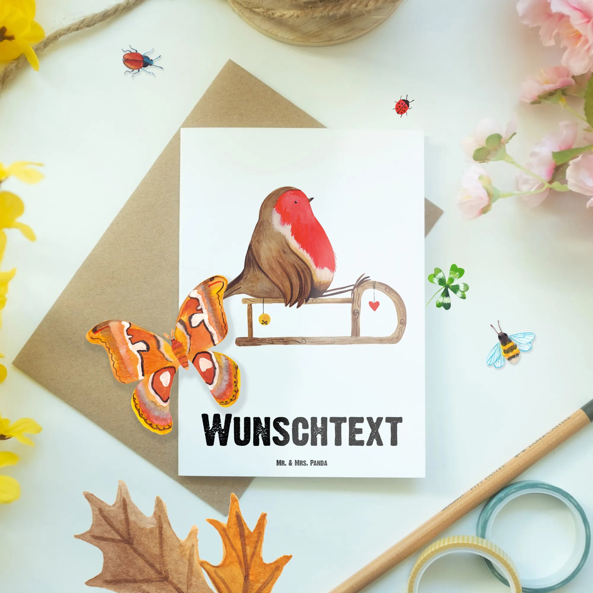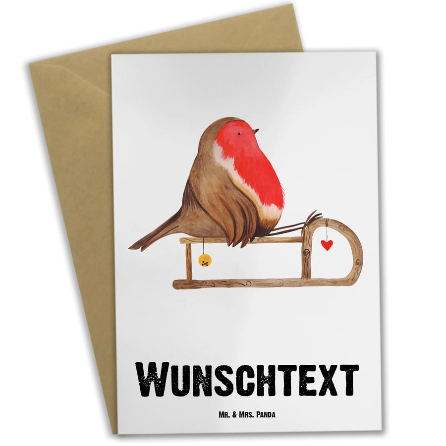 Personalisierte Grußkarte Rotkehlchen Schlitten – Mr. & Mrs. Panda