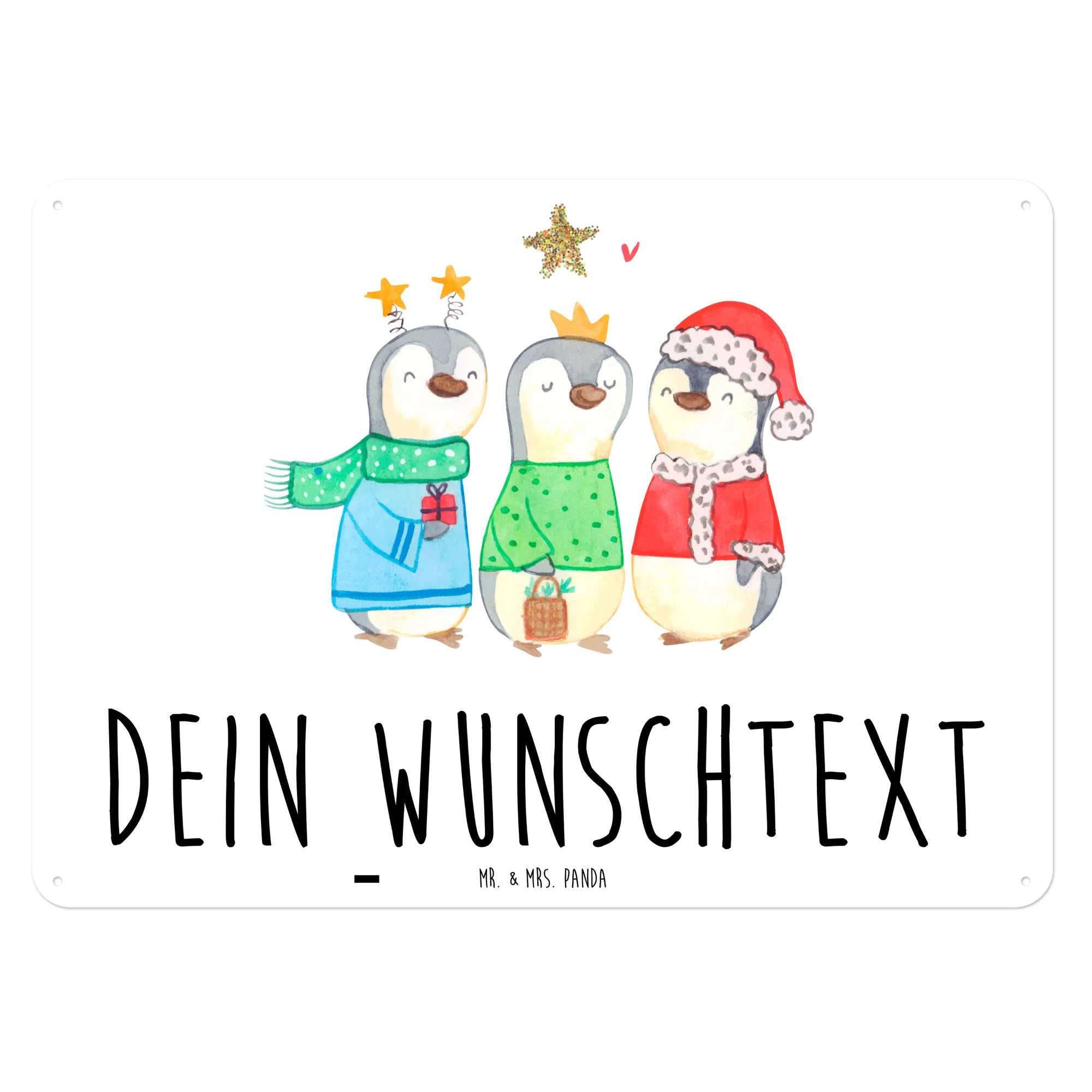Das personalisierte Blechschild "Winterzeit Heilige drei Könige" von Mr. & Mrs. Panda ist das perfekte Geschenk für die Weihnachtszeit. 🎄 Mit seinem wunderschönen Motiv von drei süßen Pinguinen, die sich als die heiligen drei Könige verkleidet haben, zaubert es jedem ein Lächeln ins Gesicht.