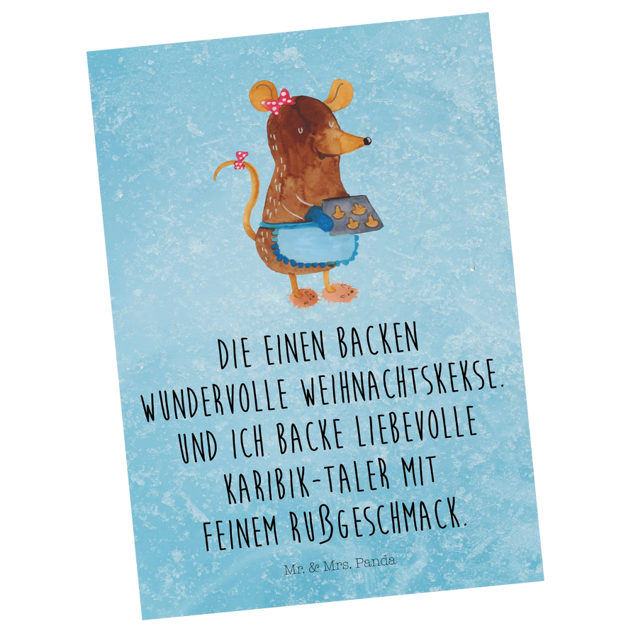 Schau dir unsere bezaubernde Postkarte mit dem süßen Motiv der Maus Kekse an! Diese einzigartige Postkarte von Mr. & Mrs. Panda bringt ganz viel Freude in die Winterzeit und eignet sich perfekt als Weihnachtsgruß oder Einladung für dein nächstes Fest. Fröhlich backt unsere kleine Maus mit dem spritzigen Slogan: "Die einen backen wundervolle Weihnachtskekse. Und ich backe liebevolle Karibik-Taler mit feinem Rußgeschmack."