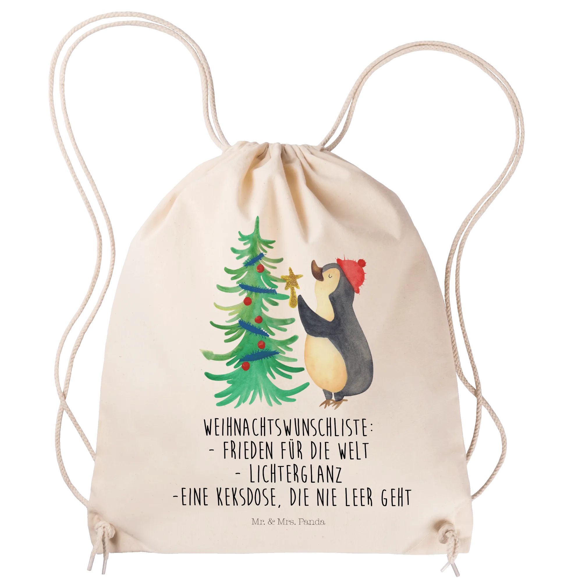 Entdecke den zauberhaften Sportbeutel mit dem süßen Pinguin Weihnachtsbaum aus der Winter Kollektion von Mr. & Mrs. Panda! Dieser hochwertige Sportbeutel aus 100% weicher Baumwolle ist nicht nur ein praktischer Begleiter für den Alltag, sondern auch das perfekte Accessoire für die festlichen Tage.