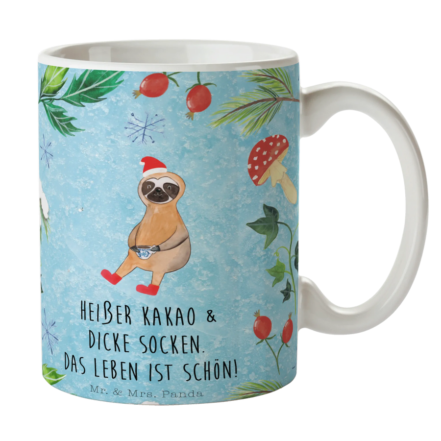 Die wunderschöne Tasse Faultier Kakao aus der Winter Kollektion von Mr. & Mrs. Panda ist das perfekte Geschenk für alle, die die besinnliche Weihnachtszeit lieben! Diese Keramiktasse mit ihrem niedlichen Faultier-Motiv und dem fröhlichen Spruch 'Heißer Kakao & dicke Socken. Das Leben ist schön!' bringt dir schon beim ersten Blick ein Lächeln ins Gesicht.