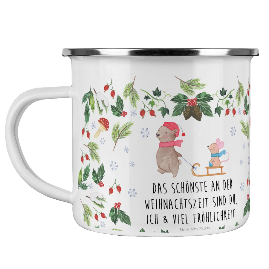 Die Camping Emaille Tasse "Bär Maus Schlitten" von Mr. & Mrs. Panda ist das perfekte Geschenk für alle, die die bezaubernde Winter- und Weihnachtszeit lieben! 🎁 Diese wunderschöne und beständige Tasse aus kratzfester Emaille bringt nicht nur Freude in den Alltag, sondern erinnert auch an die magischen Momente des Winters.
