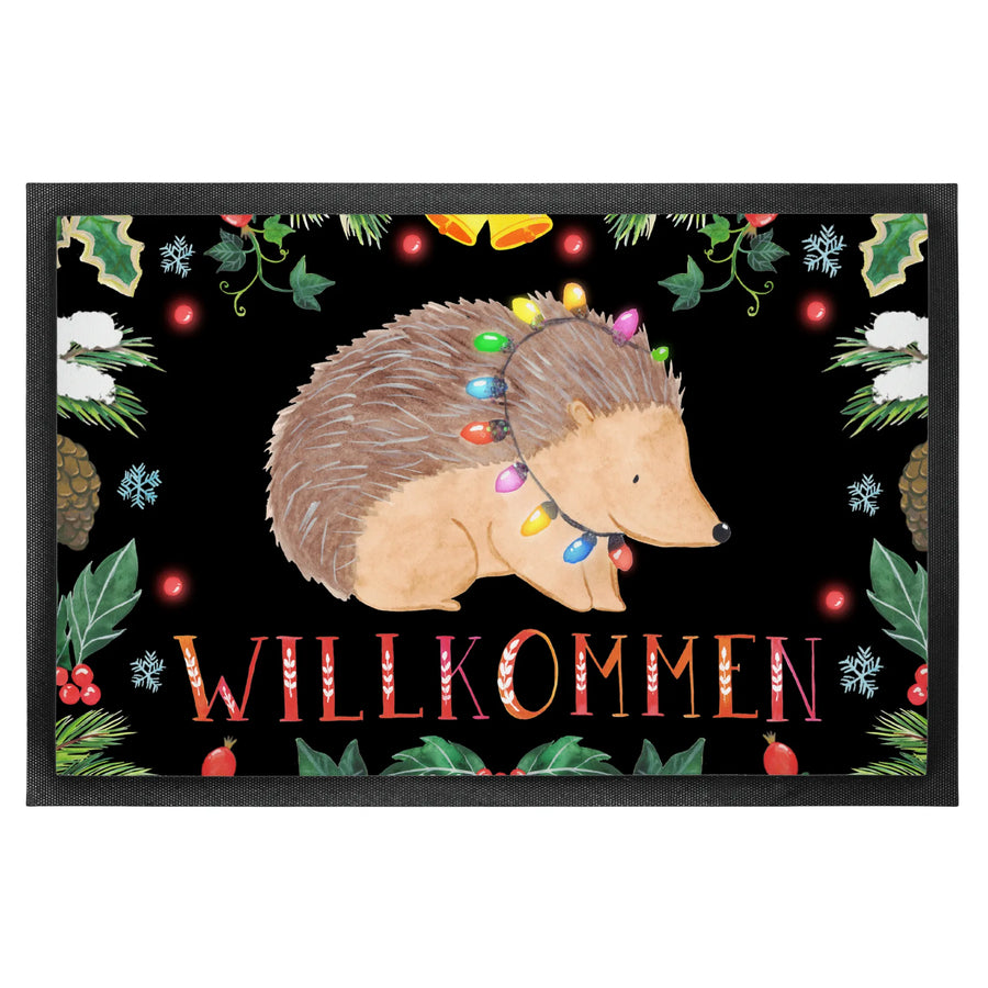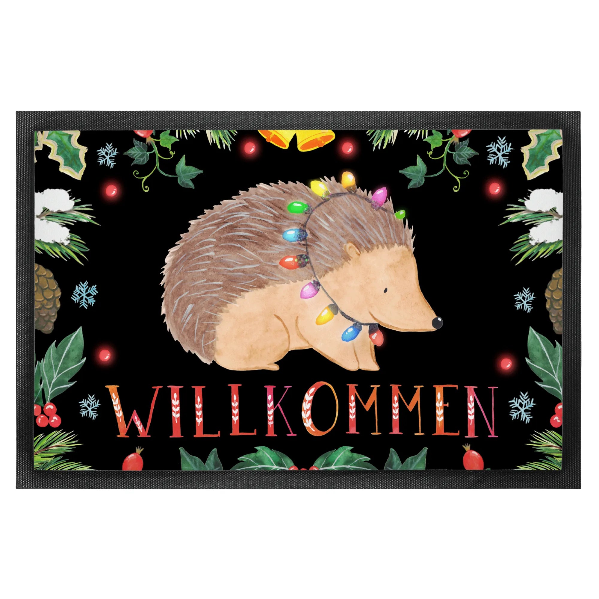 Entdecke die bezaubernde Fußmatte "Igel Lichterkette" aus der Winter Kollektion von Mr. & Mrs. Panda! Juhuu, die schönste Zeit im Jahr beginnt! Diese hochwertige Fußmatte kombiniert Funktionalität mit einem liebevoll handgezeichneten Motiv.