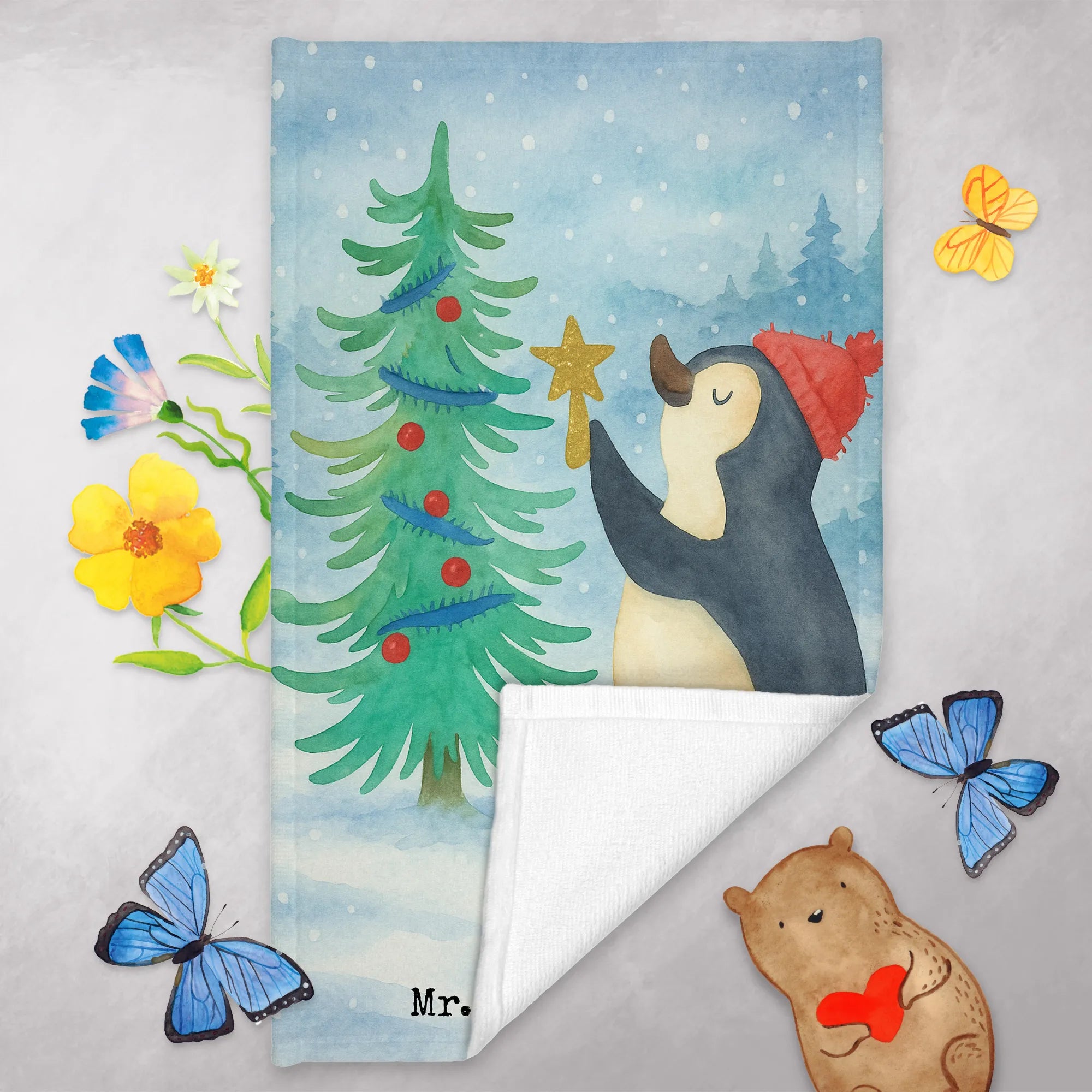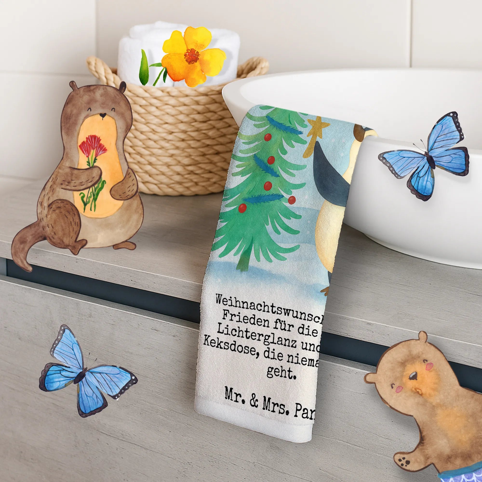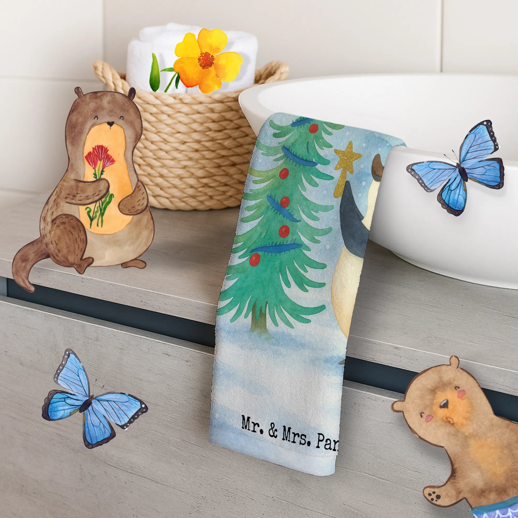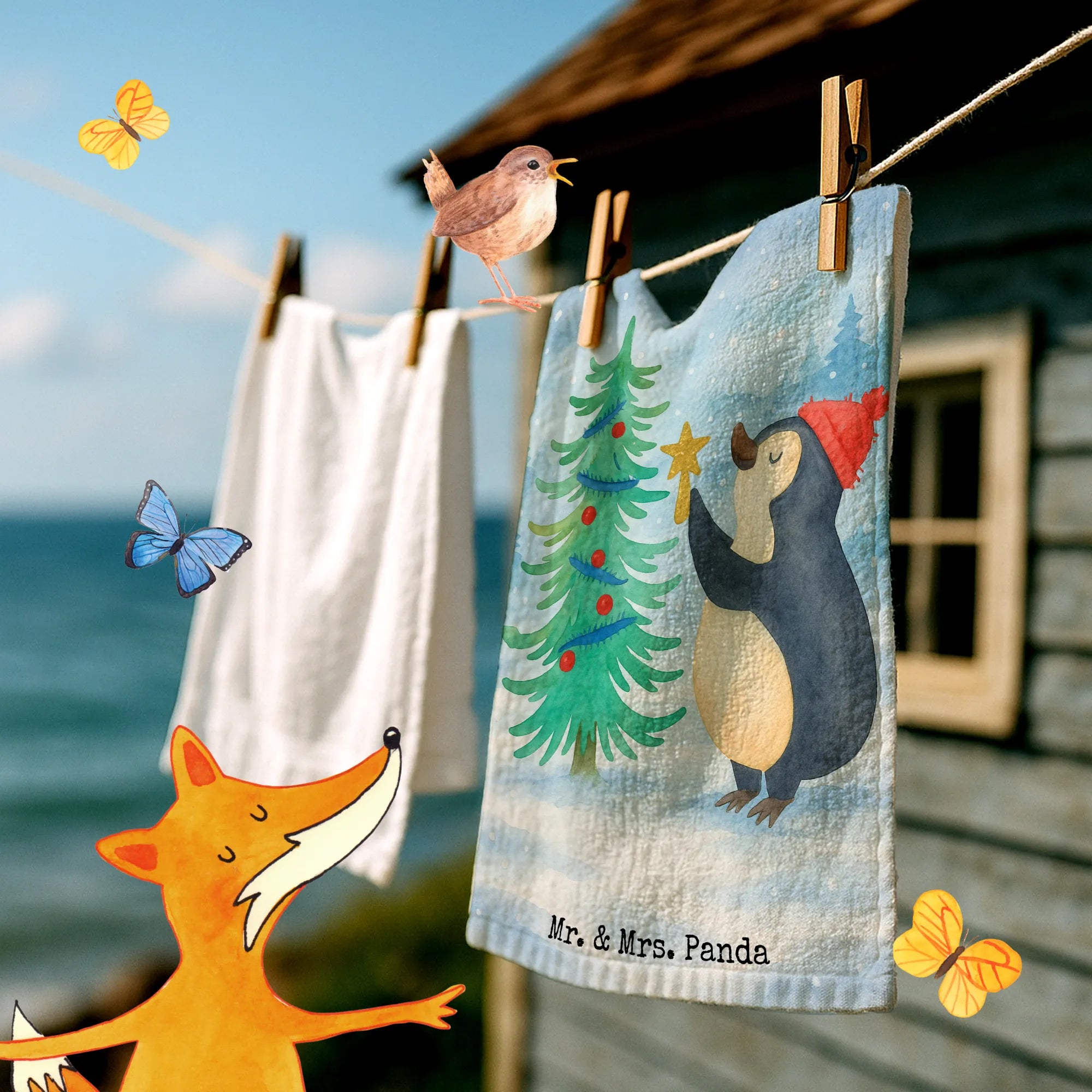 Gästehandtuch Pinguin Weihnachtsbaum Design - mit Spruch