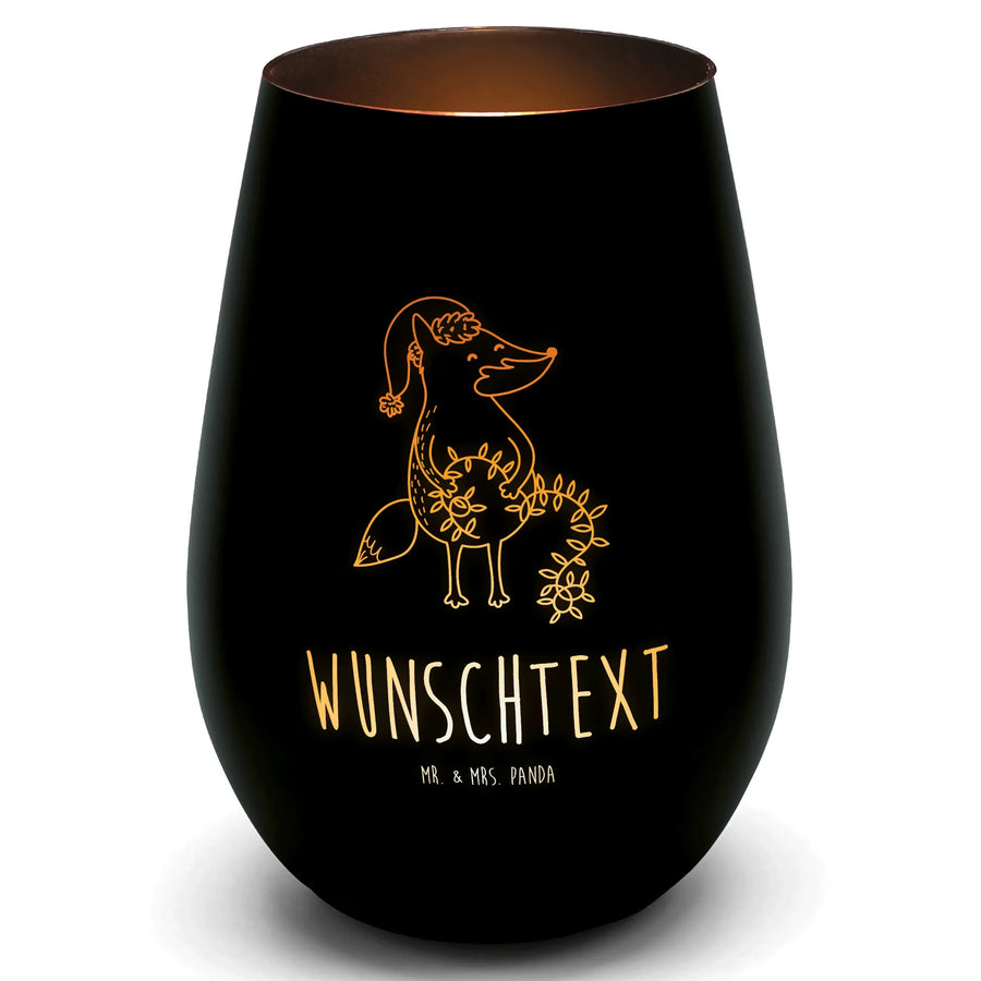 Gold Windlicht Personalisiert Fuchs Weihnachten - Schwarz