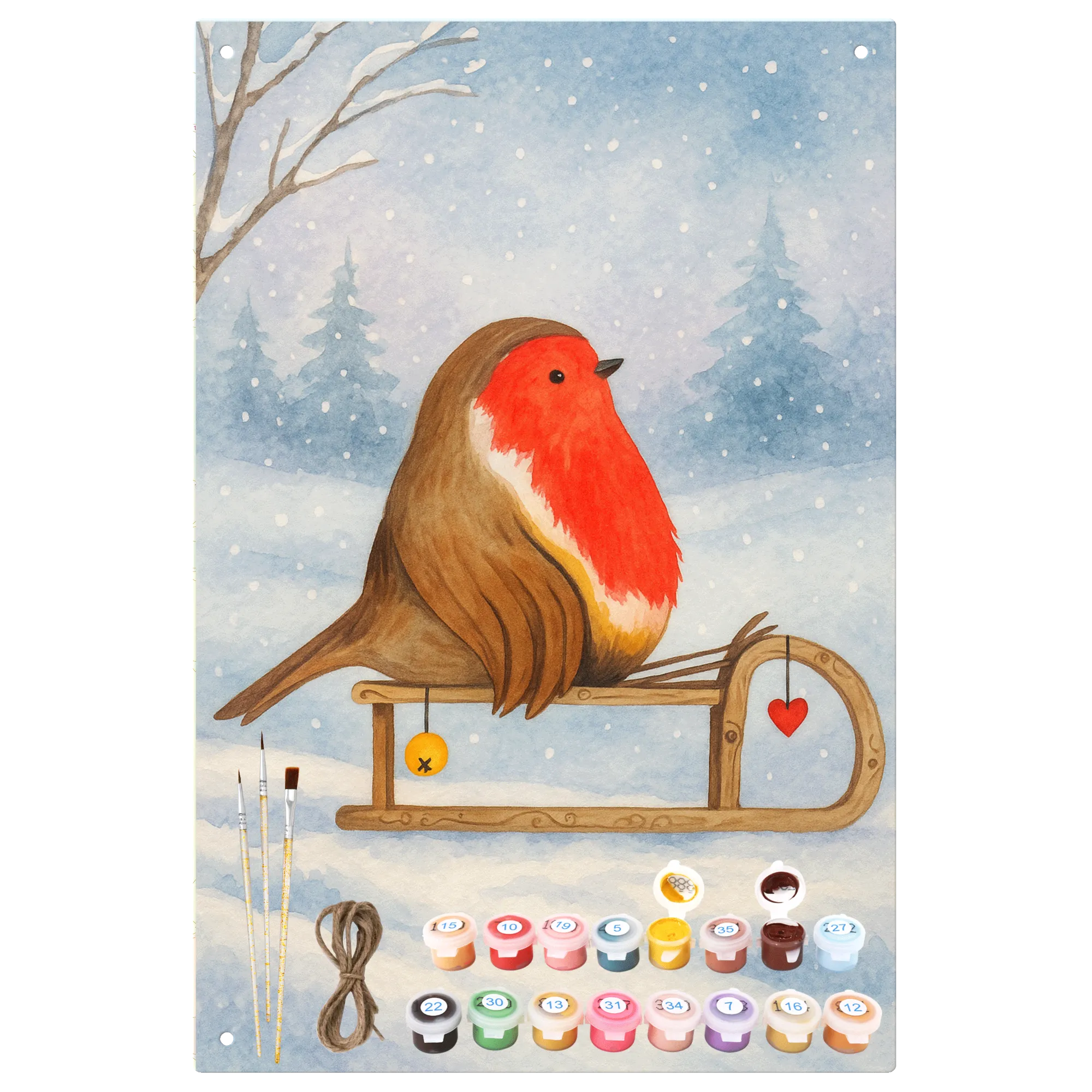 Malen nach Zahlen Metallschild Rotkehlchen Schlitten Design