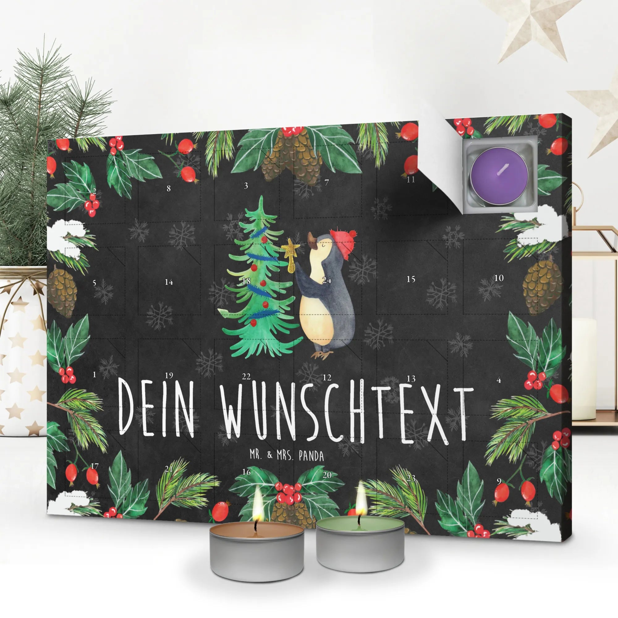 Personalisierter Duftkerzen Adventskalender Pinguin Weihnachtsbaum - Kreidetafel