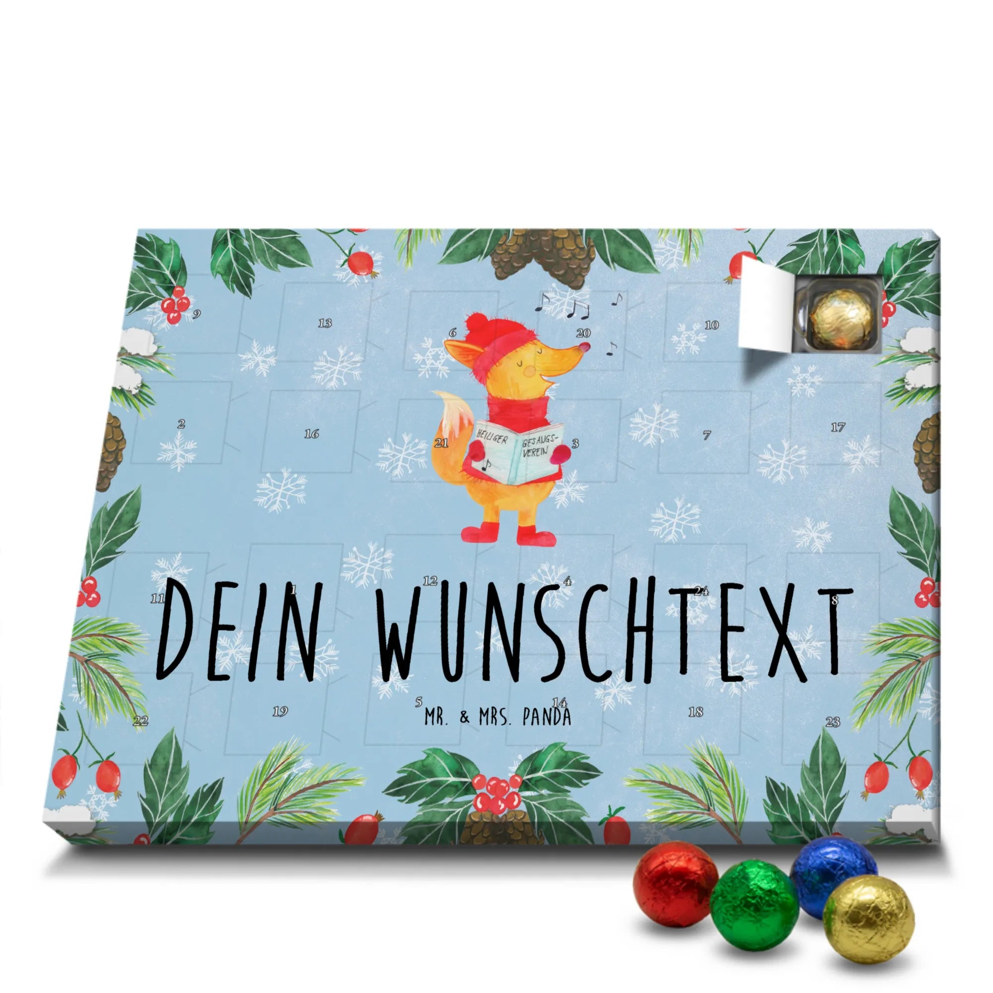 Personalisierter Adventskalender Fuchs Sänger - Classic - Eisblau