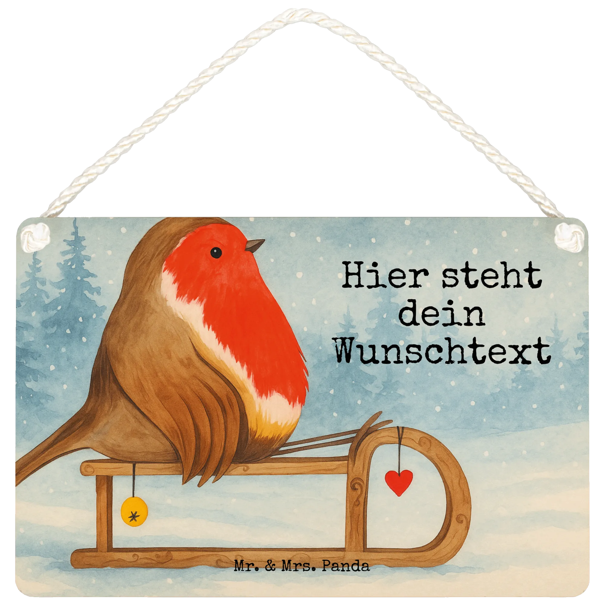 Holzschild personalisiert Rotkehlchen Schlitten Design - DIN A4