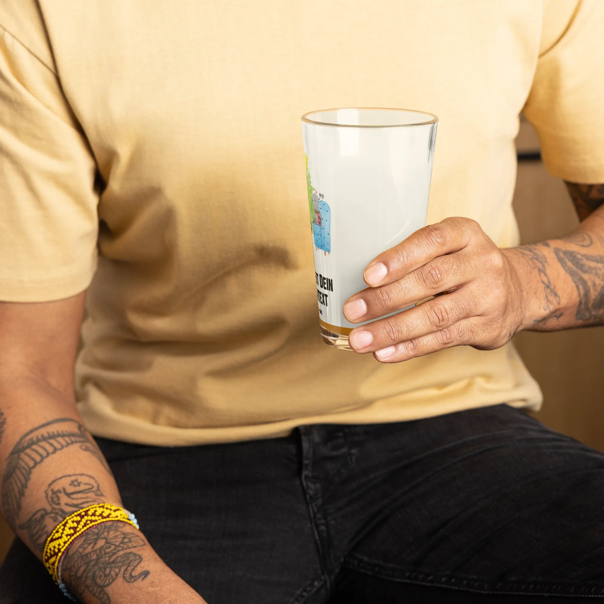 Das personalisierte Trinkglas von Mr. & Mrs. Panda ist ein echter Hingucker! Mit einer Höhe von 150 mm und einem Durchmesser von 90 mm eignet es sich wunderbar für all deine Lieblingsgetränke. Mit einem Gewicht von 300 g ist es robust und langlebig. Die süßen Motive und individuellen Sprüche machen dieses Glas zu etwas ganz Besonderem und ideal als Geschenk für Freund oder Familie. Egal ob Saft, Limonade oder Bier – es lässt sich für alles verwenden. Das Licht spielt mit den tollen Unterfarben und bringt die Motive wunderbar zur Geltung. Bitte beachte, dass das Glas nicht für die Mikrowelle und nicht spülmaschinensicher ist. Eine sanfte Handwäsche wird empfohlen, damit die edlen Drucke lange erhalten bleiben. Es kann auch als Rührglas für deine Getränke genutzt werden!