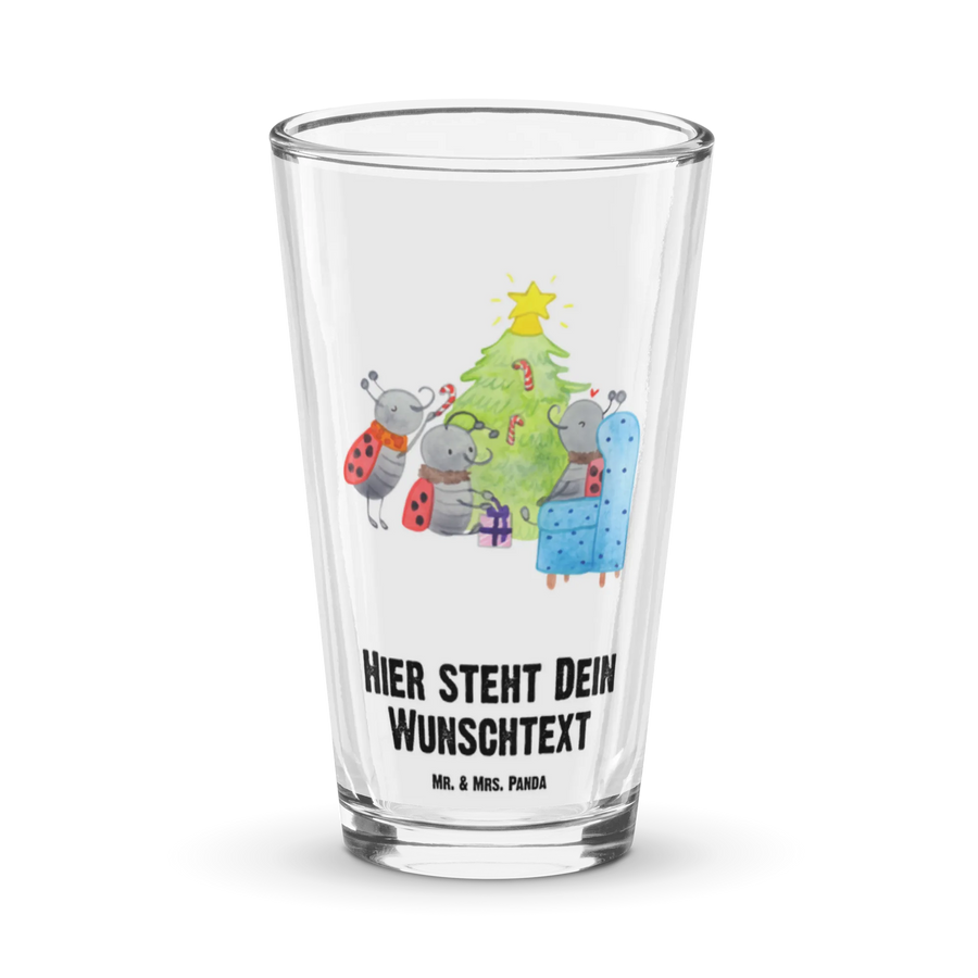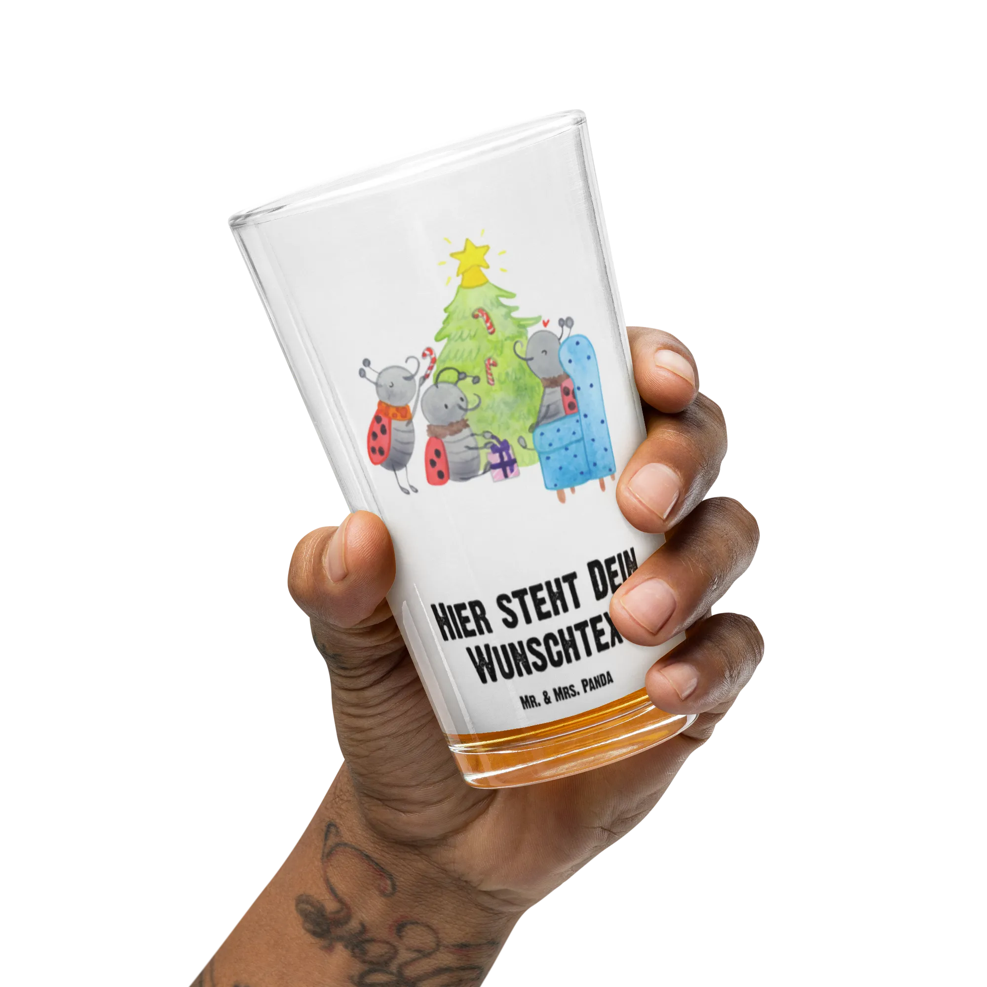 Das personalisierte Trinkglas "Weihnachten Smörle" aus der Winter Kollektion von Mr. & Mrs. Panda ist das perfekte Geschenk für die festliche Saison. Das hochwertig verarbeitete Glas mit einem faszinierenden winterlichen Motiv zeigt drei fröhliche Marienkäfer, die den Weihnachtsbaum mit Pfefferminzstangen schmücken und Geschenke auspacken.