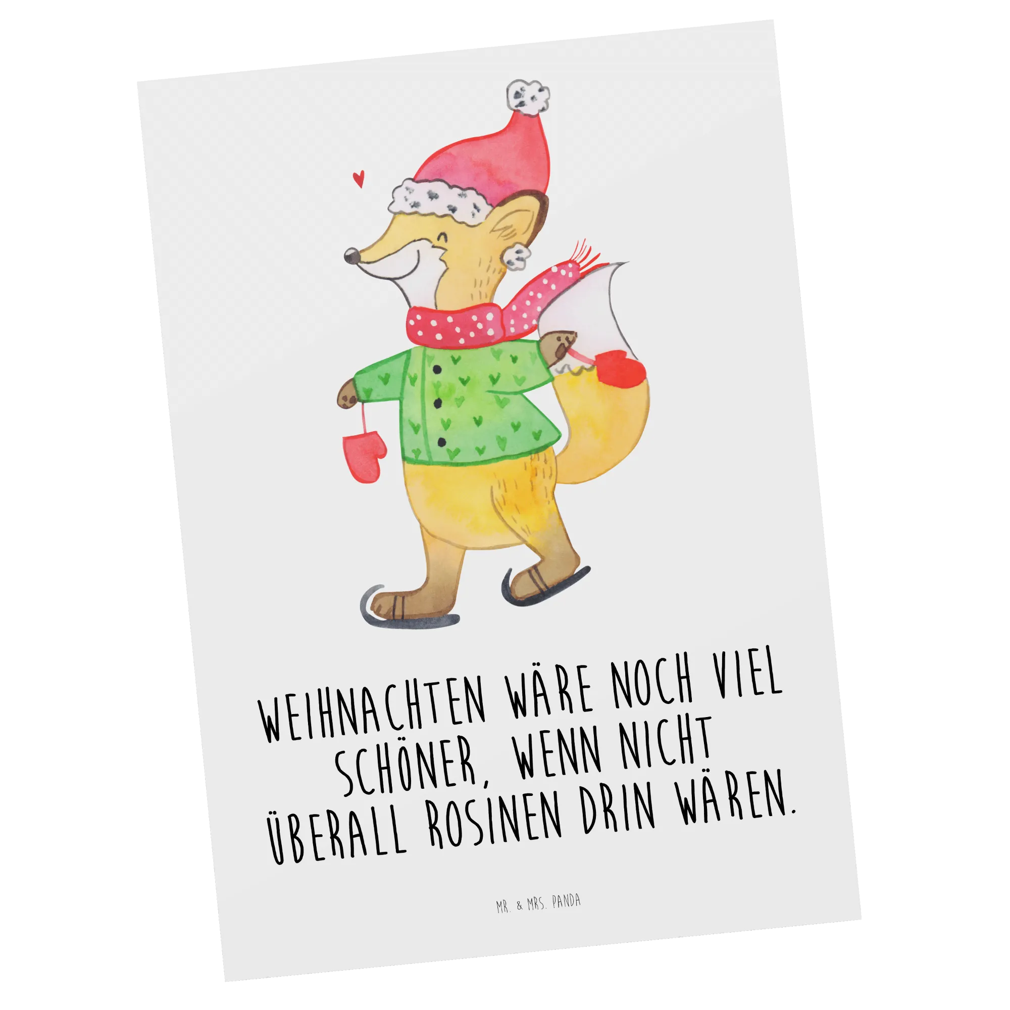 Wenn du auf der Suche nach einer perfekten Postkarte für die Winter- und Weihnachtszeit bist, dann ist die Postkarte Fuchs Schlittschuhe aus der Winter Kollektion von Mr. & Mrs. Panda genau das Richtige für dich! Diese einzigartige Karte zeigt einen fröhlichen Fuchs in einem grünen Mantel, der mit einem roten Schal und einer Weihnachtsmütze Schlittschuh fährt. Mit einem charmanten Lächeln auf seinem Gesicht versprüht der fuchsige Freund pure Weihnachtsfreude!