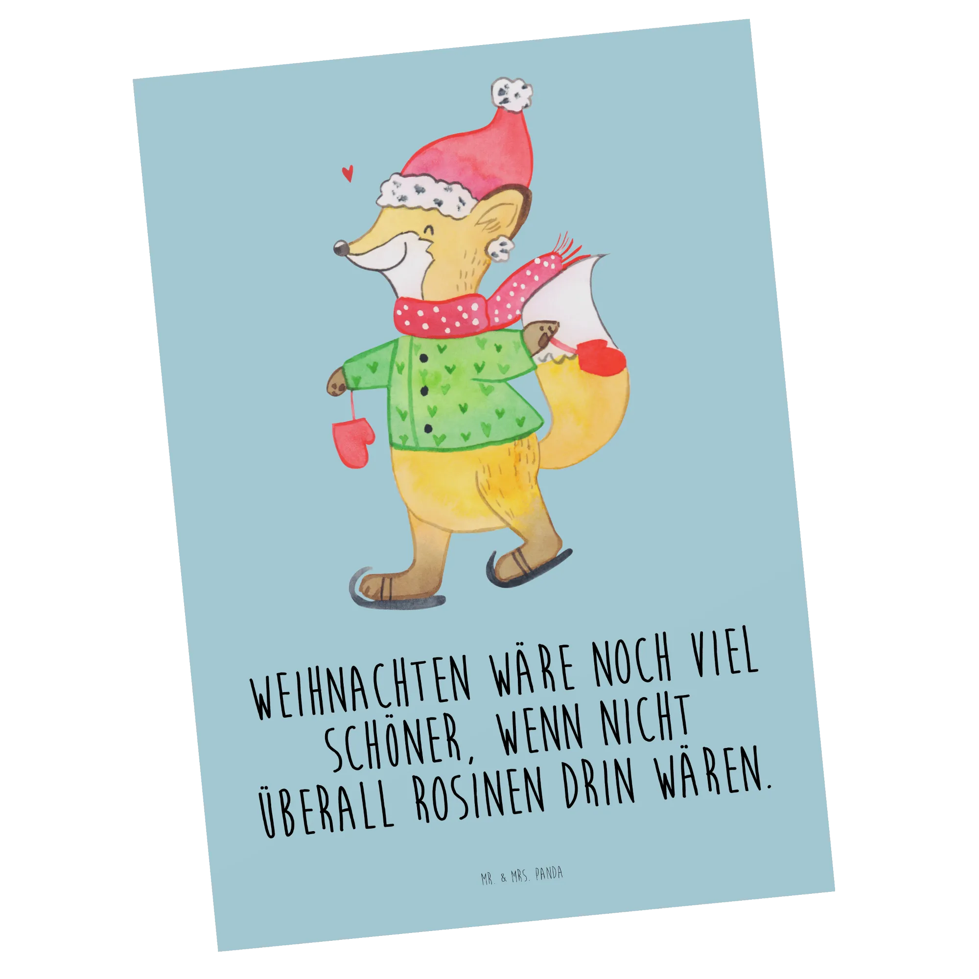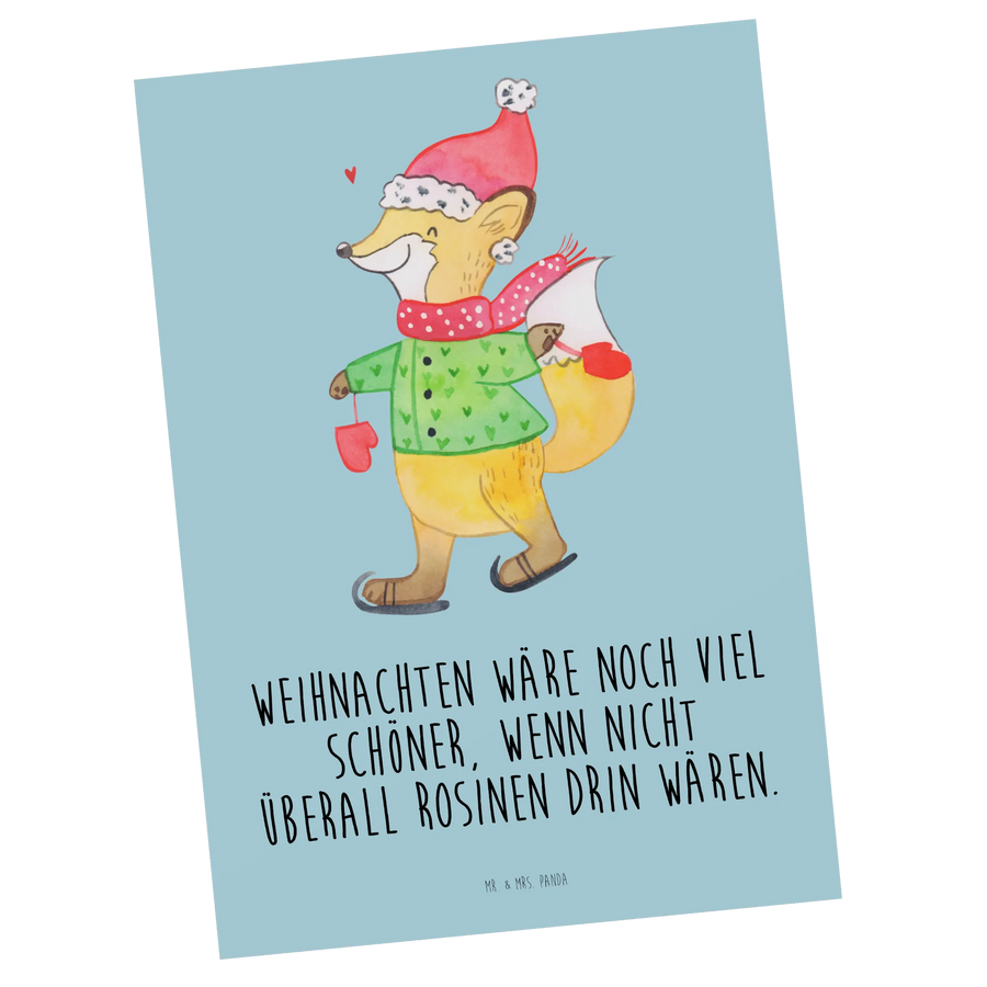 Postkarte Fuchs Schlittschuhe - Eisblau
