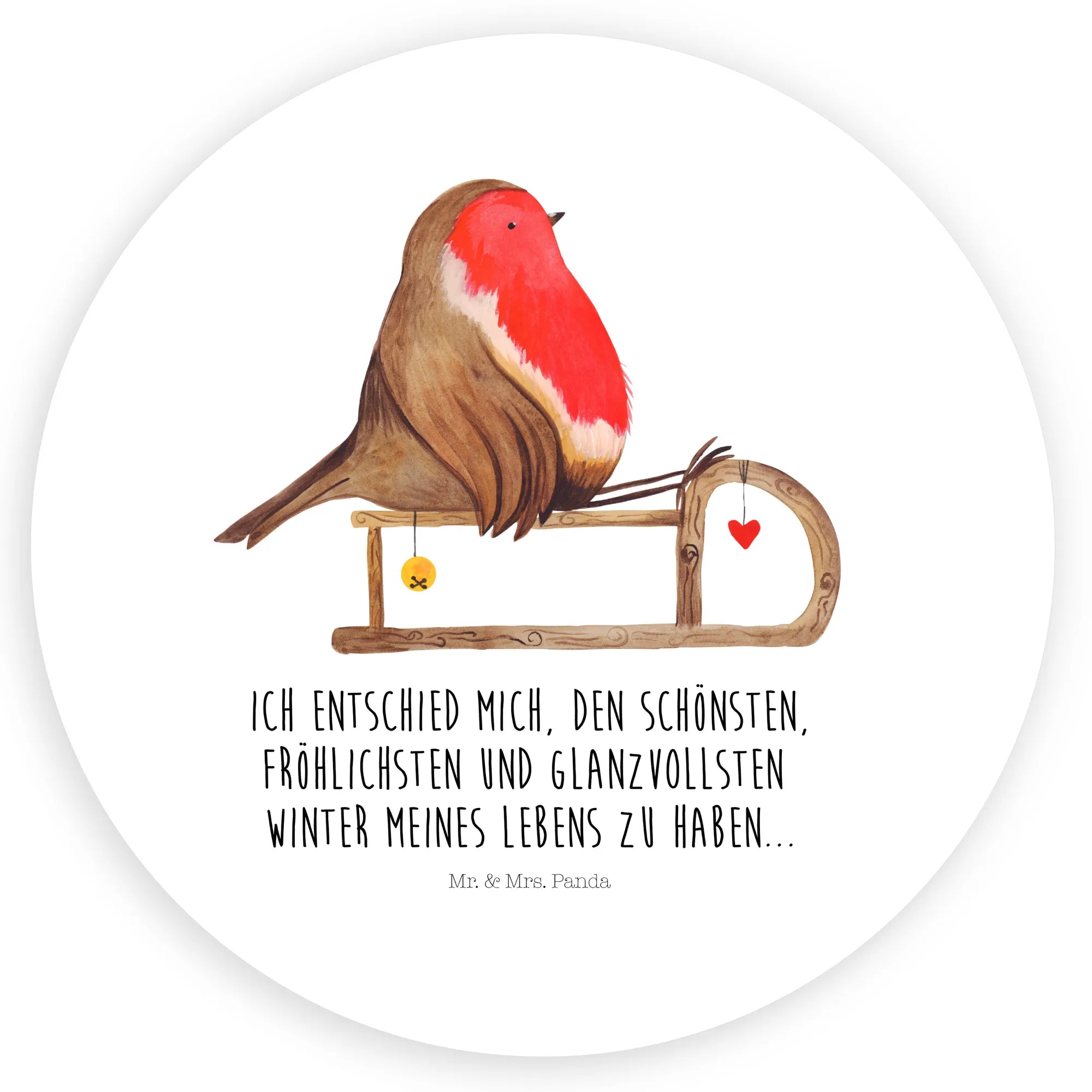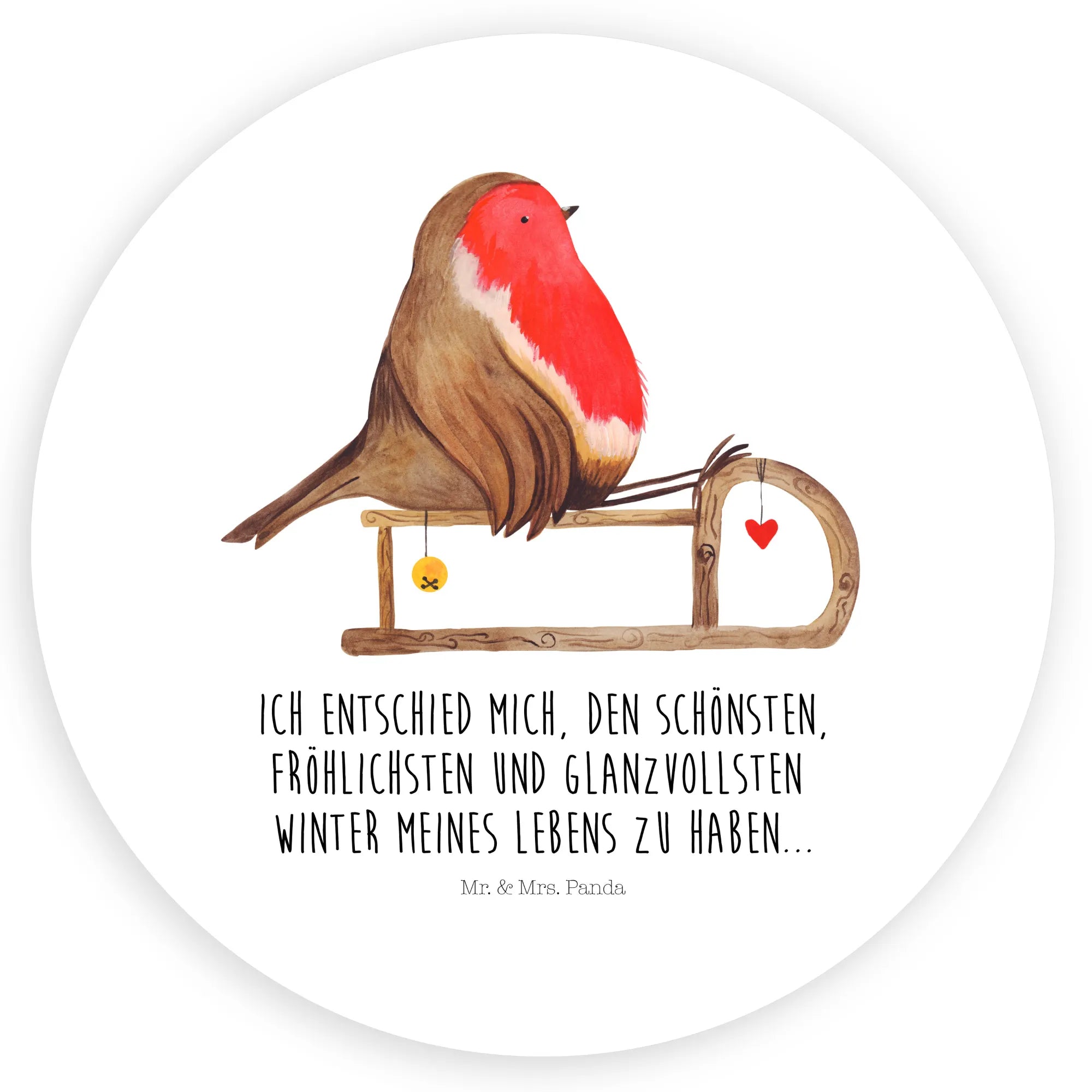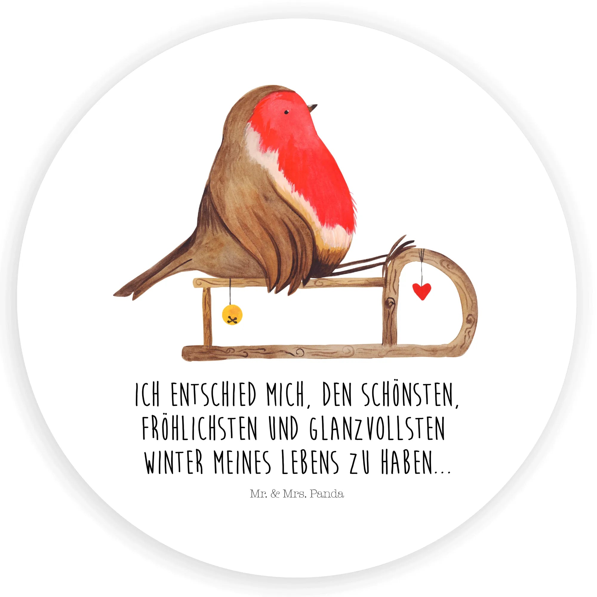 Rund Aufkleber Rotkehlchen Schlitten - 80mm Rund Aufkleber - mit Spruch - Weiß