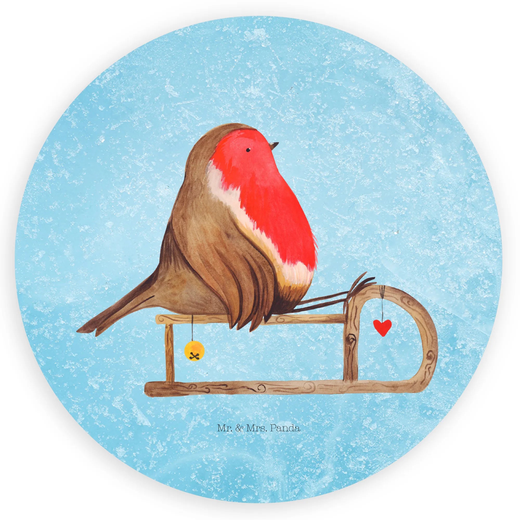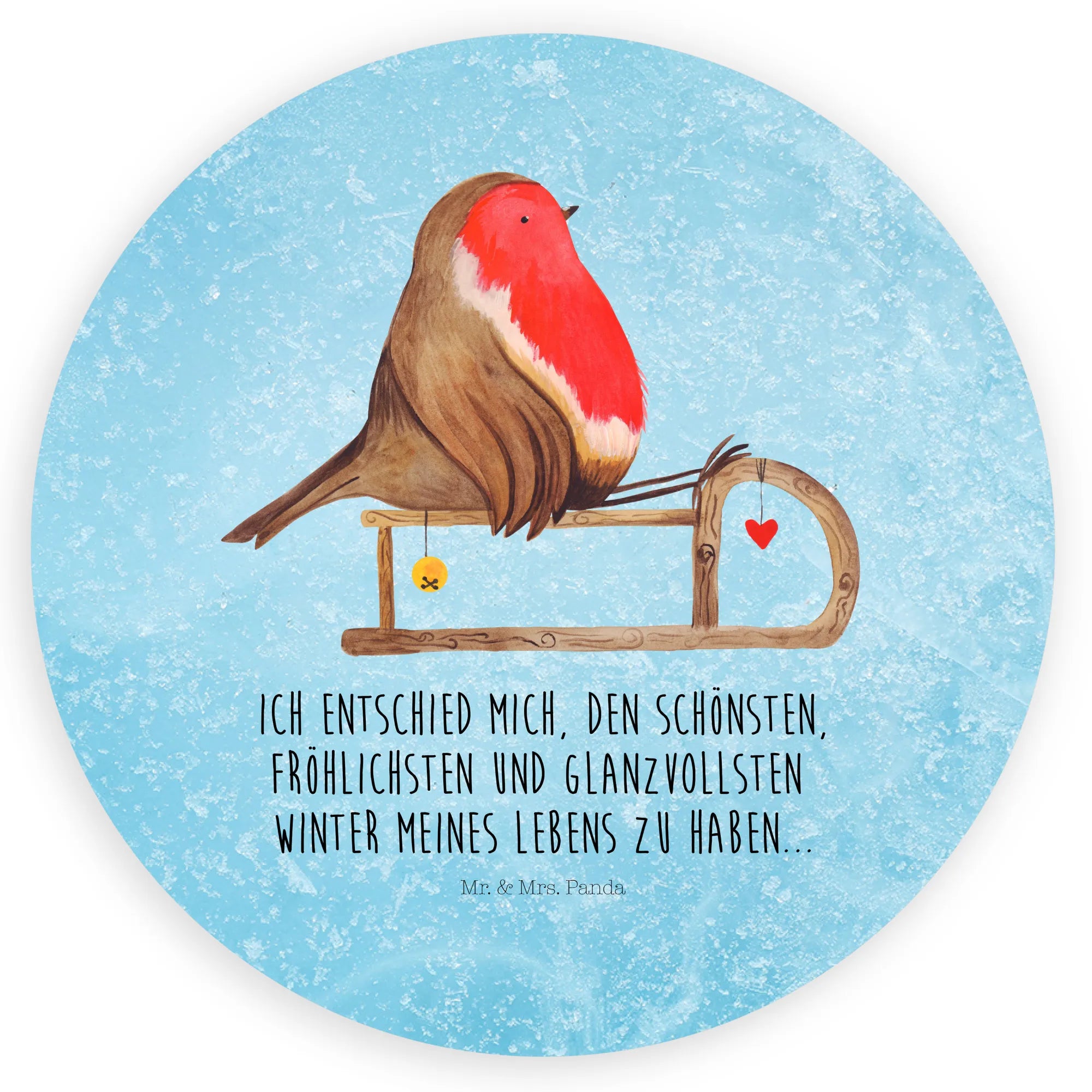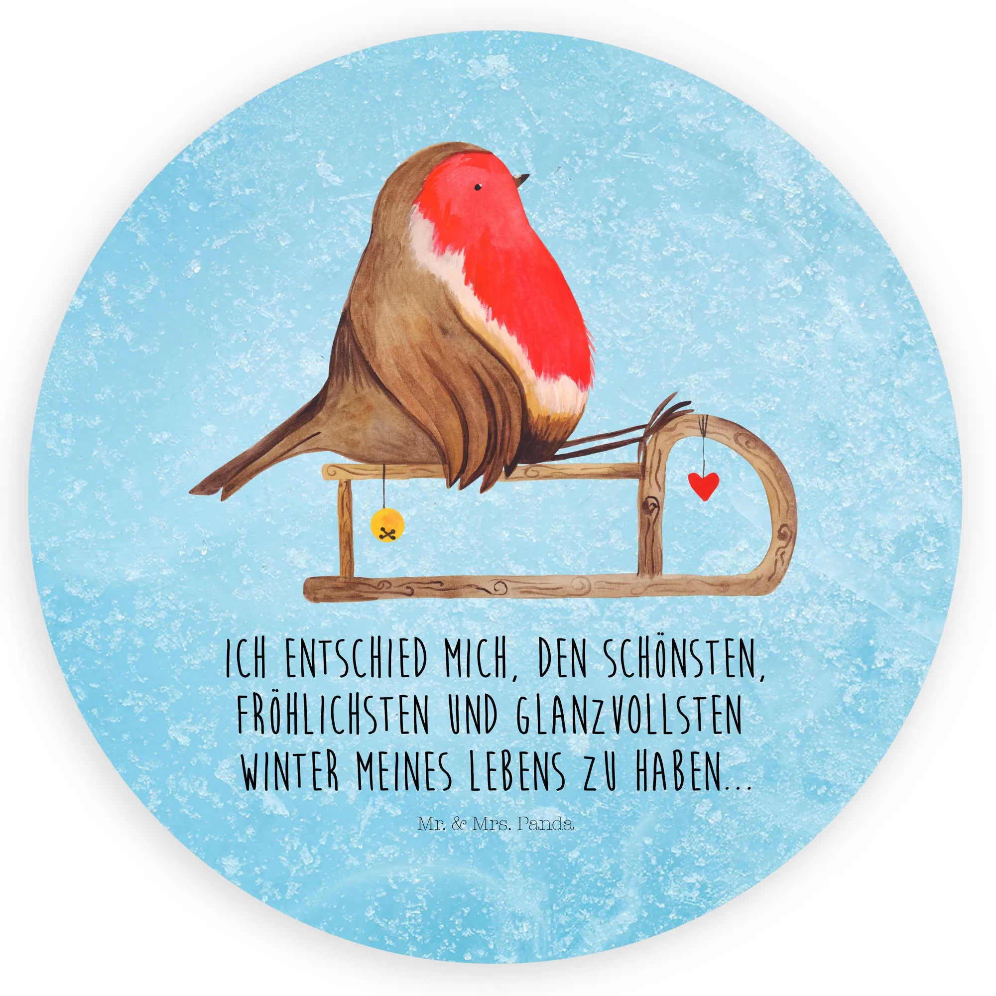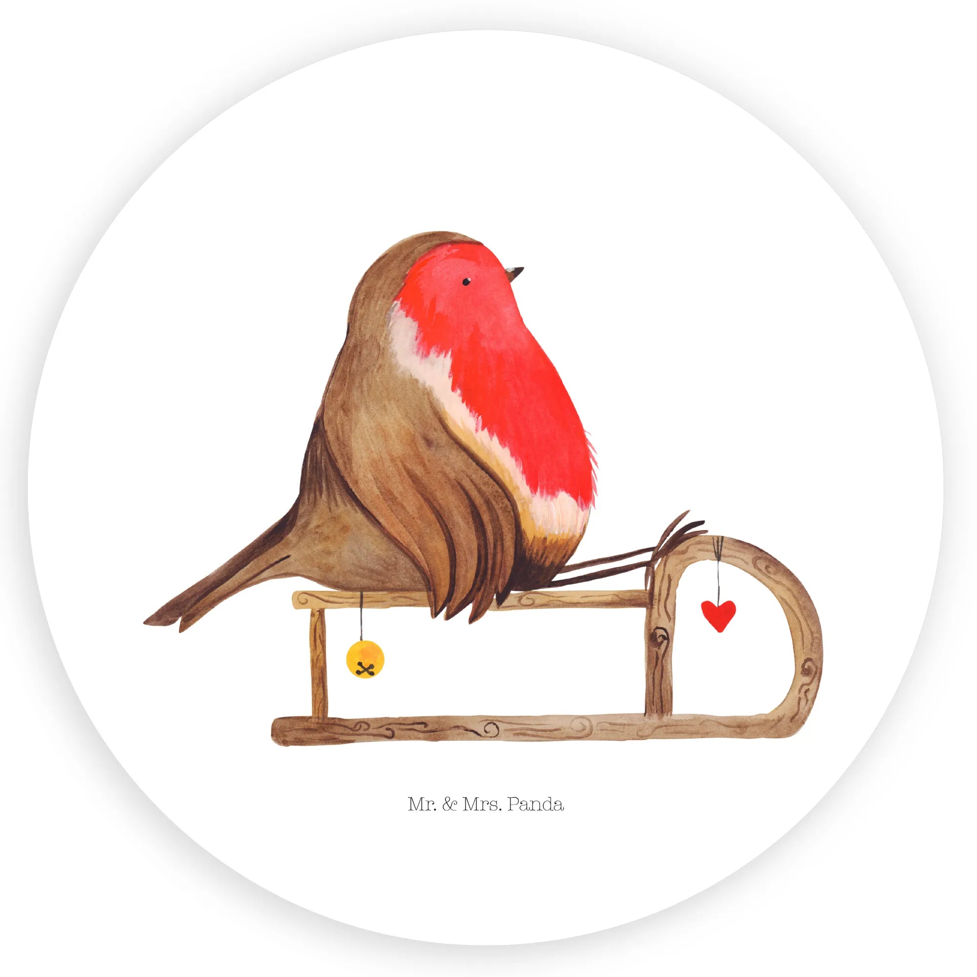 Rund Aufkleber Rotkehlchen Schlitten - 80mm Rund Aufkleber - mit Spruch - Weiß