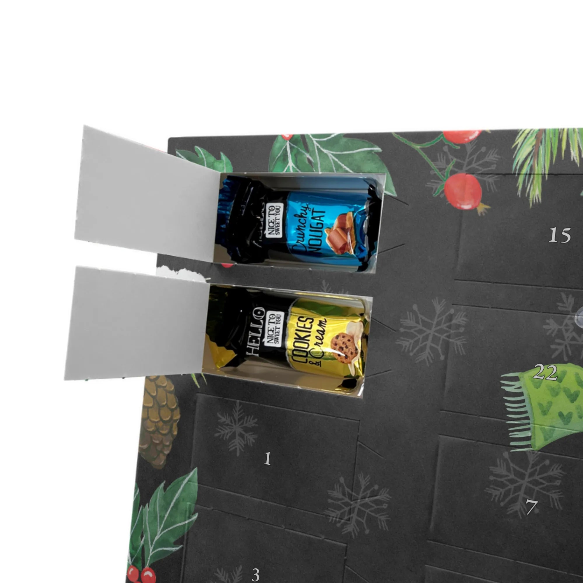 Schon unser Schoko-Adventskalender von Mr. & Mrs. Panda gesehen? Ein liebevoll gestalteter Kalender, bedruckt mit wunderschönen Motiven & Sprüchen, der deine Adventszeit versüßt. Der Kalender ist nicht personalisierbar, überzeugt aber durch brillante Druckqualität mit seidenmatter Oberflächenveredelung und bedruckte Seitenflächen für ein rundum schönes Erscheinungsbild. Maße: 325 mm x 225 mm x 27 mm. Du kannst ihn aufhängen oder aufstellen – ganz wie es dir gefällt. Gefüllt mit Ritter Sport Schokowürfeln in köstlichen Sorten: Mousse au Chocolat, Schoko Crisp, Voll-Nuss in Nougatcreme, Karamell Duo, Joghurt und Erdbeer-Joghurt. Bitte beachten: Es handelt sich um einen Kalender gefüllt mit Ritter Sport Schokolade, nicht um einen Kalender der Marke Ritter Sport. Ob als Geschenk oder für dich selbst – dieser Schoko-Adventskalender bringt täglich kleine Glücksmomente und süße Überraschungen.