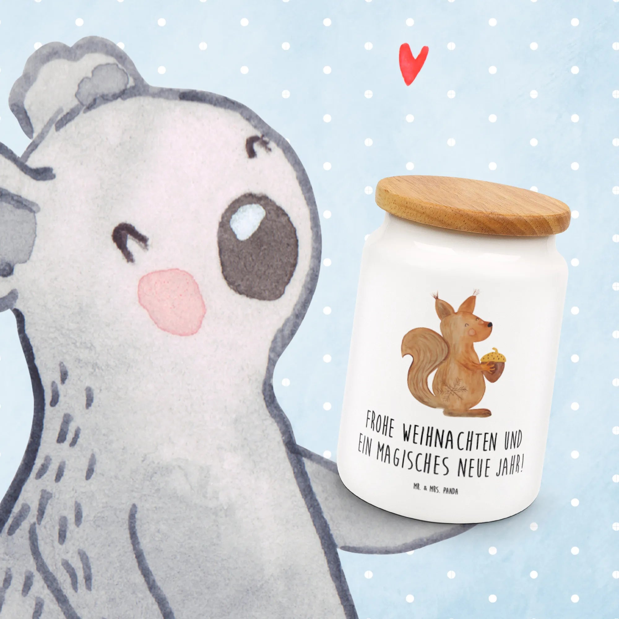 Die liebevolle Vorratsdose mit dem bezaubernden Eichhörnchen Weihnachtsmotiv aus der Winter Kollektion von Mr. & Mrs. Panda ist einfach perfekt für die festliche Zeit. Sie verbindet Funktionalität mit einem charmanten Design, das die Herzen von Tierliebhabern und Weihnachtsfans gleichermaßen höherschlagen lässt. Diese Keramikdose misst 145 mm in der Höhe und hat einen Durchmesser von 95 mm, was ideal ist, um all deine Lieblingskekse, Nüsse oder sogar kleine Weihnachtsgeschenke sicher aufzubewahren.