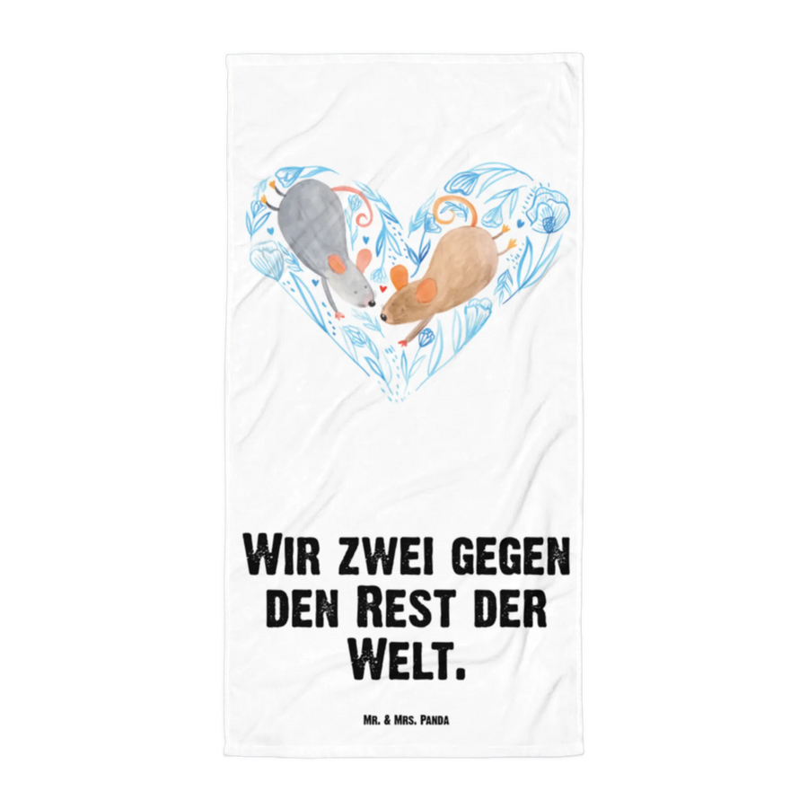 Das XL Badehandtuch Mäuse Herz von Mr. & Mrs. Panda ist das perfekte Geschenk für alle Liebenden und Verliebten. Ob für den Jahrestag, die Verlobung, die Hochzeit oder einfach als kleines Liebesgeschenk für den Lieblingsmenschen – dieses Handtuch bringt ein Lächeln auf jedes Gesicht. Mit dem bezaubernden Motiv der zwei niedlichen Mäuse, die ein Herz formen, überbringen wir die süßeste Liebesbotschaft: "Wir zwei gegen den Rest der Welt."