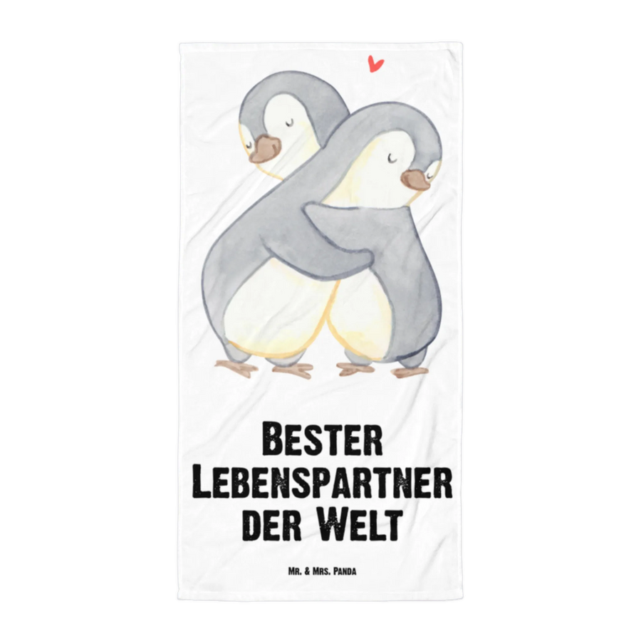 Das XL Badehandtuch mit dem süßen Pinguin-Motiv "Bester Lebenspartner der Welt" von Mr. & Mrs. Panda ist das perfekte Geschenk für deinen liebsten Lebenspartner. Egal, ob für den Hochzeitstag, Geburtstag oder einfach zum Danke sagen – dieses handgefertigte Handtuch wird das Herz deines Partners im Sturm erobern.