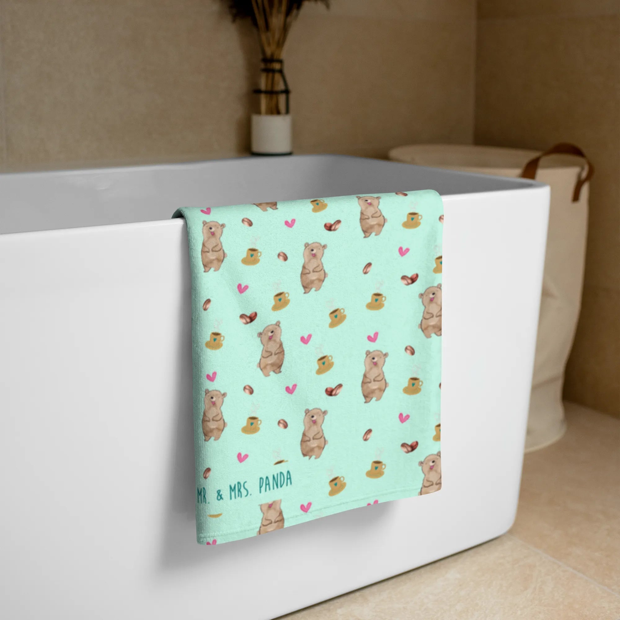 Zeige Deine Liebe zu Kaffee und kuscheligen Handtüchern mit diesem einzigartigen Produkt von Mr. & Mrs. Panda. Ein tolles Geschenk für Kaffeeliebhaber, Tierfreunde oder als Hingucker in Deinem Zuhause!