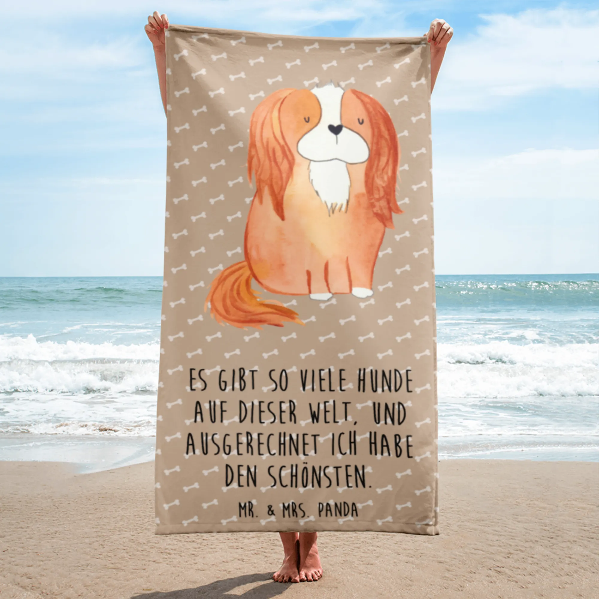 Das XL Badehandtuch von Mr. & Mrs. Panda ist das perfekte Geschenk für alle Hundeliebhaber, insbesondere für diejenigen, die den Cavalier King Charles Spaniel in ihrem Herzen tragen. Mit einer großzügigen Größe von 1520 mm x 760 mm bietet dieses Handtuch ausreichend Platz für den Tag am Strand, im Schwimmbad oder in der Sauna.