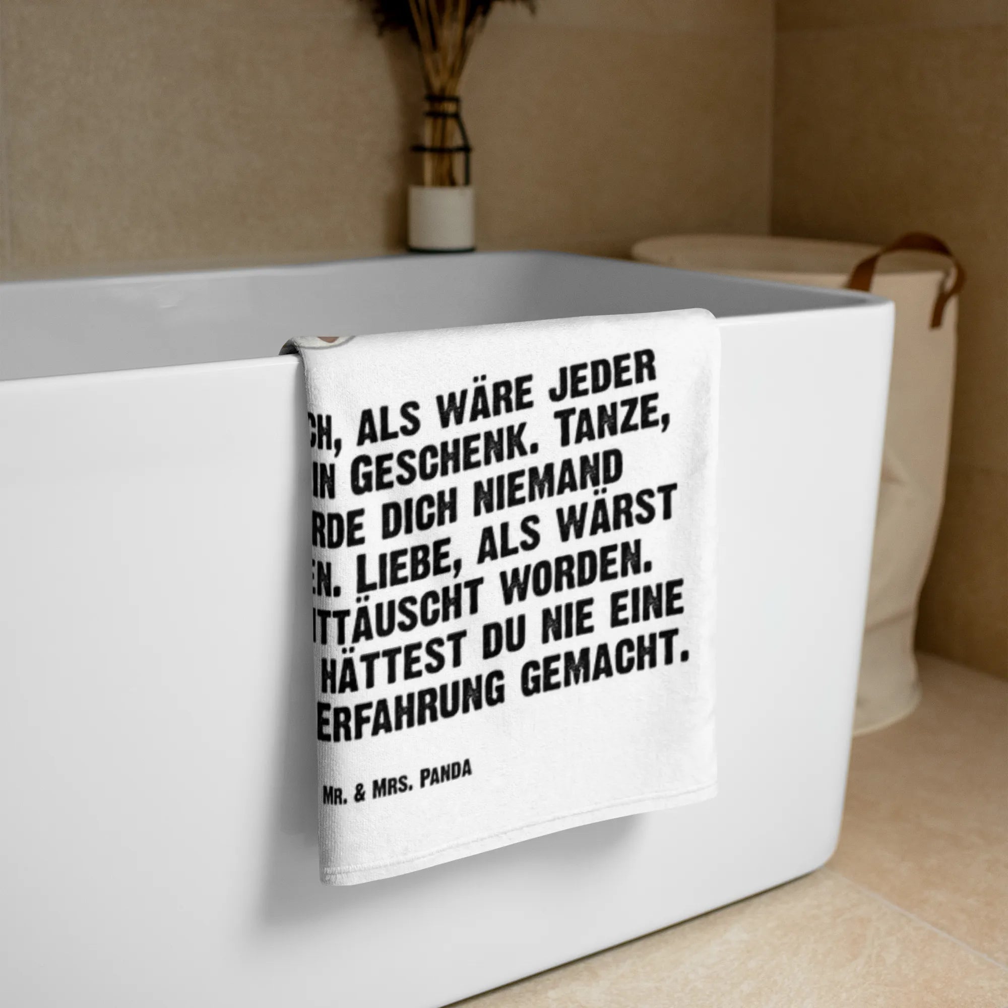 Und das Beste daran? Es ist ganz unkompliziert in der Waschmaschine bei 30°C waschbar und bleibt auch nach mehrmaligem Waschen weich und farbecht. Schenke Freude mit diesem tollen Handtuch und erinnere dich daran, jeden Moment zu genießen, ganz nach dem Motto: 'Freue dich, als wäre jeder Moment ein Geschenk.'