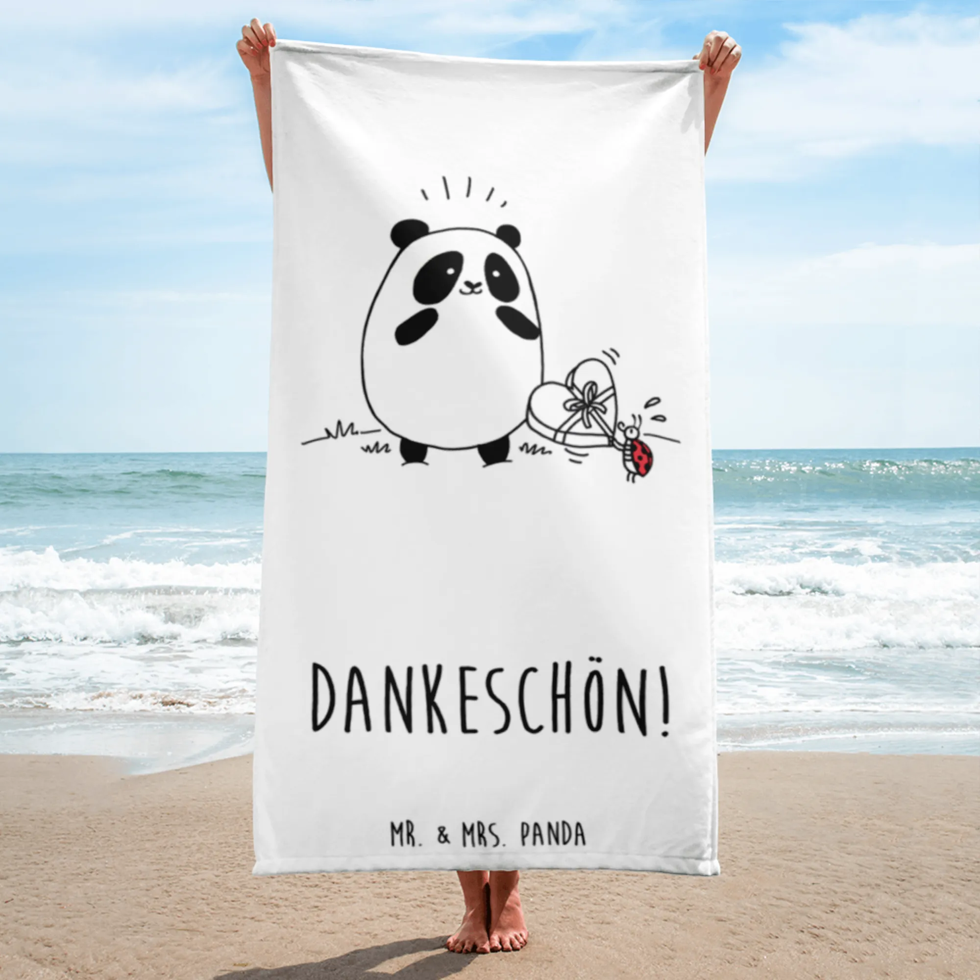 Das XL Badehandtuch "Easy & Peasy Dankeschön" von Mr. & Mrs. Panda ist nicht nur wunderschön, sondern auch praktisch und vielseitig einsetzbar. Mit einem bunten, fröhlichen Motiv zeigt es einen dankbaren Panda, der eine Schachtel Pralinen von einem kleinen Marienkäfer erhält – eine perfekte Symbolik für Dankbarkeit und Freude.