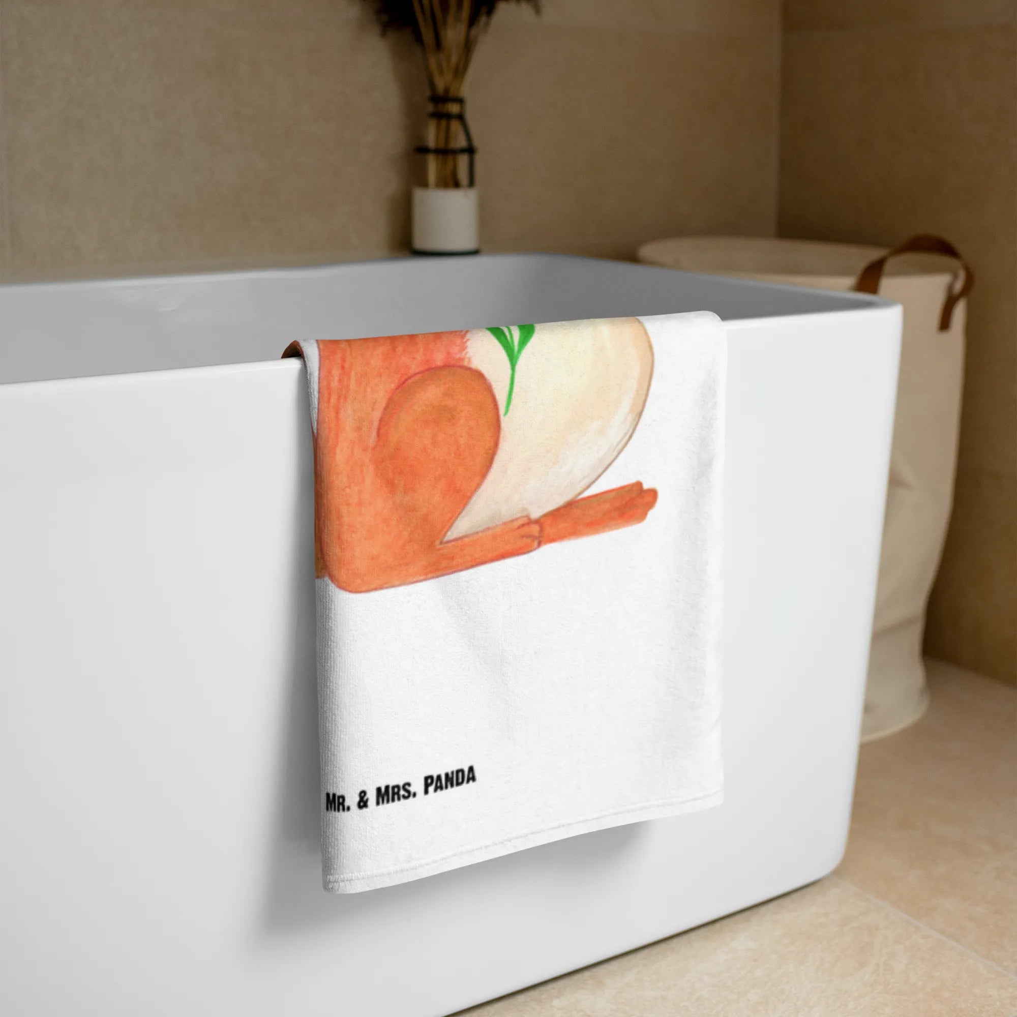 Das XL Badehandtuch Eichhörnchen Blume aus der Small World Kollektion von Mr. & Mrs. Panda ist das ideale Geschenk für alle, die eine Portion gute Laune in ihr Leben bringen möchten! Mit seinem süßen Motiv eines entzückenden Eichhörnchens, das begeistert eine Blume in der Hand hält, zaubert es jedem ein Lächeln ins Gesicht. Die warmen Farbnuancen und das liebevolle Design machen dieses Handtuch nicht nur im Badezimmer zum Blickfang.