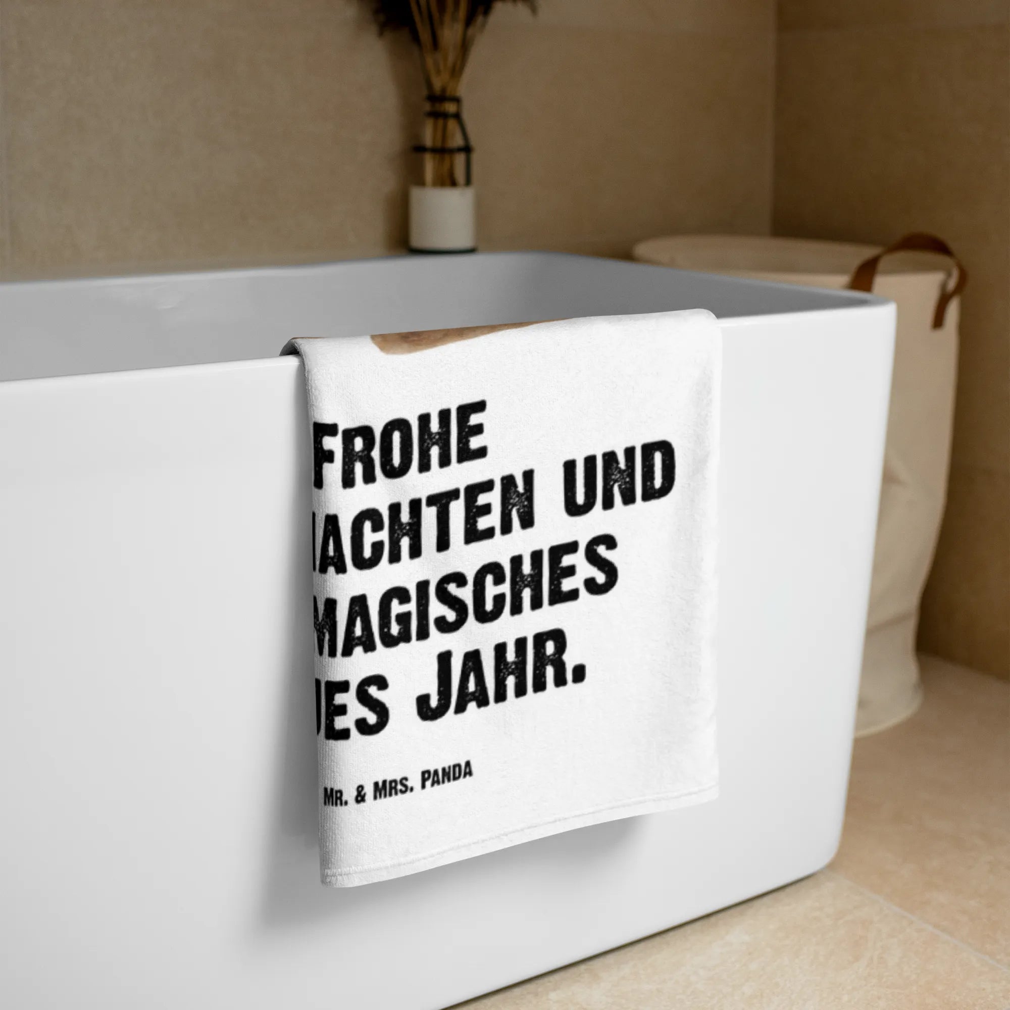Du kannst das Handtuch ganz unkompliziert bei 30°C in der Waschmaschine reinigen und es wird Dir lange Freude bereiten. Zudem ist das Handtuch auch ideal für den Einsatz in der Sauna oder beim Schwimmen. Dieses toll bedruckte Handtuch hat den Spruch "Frohe Weihnachten und ein magisches neues Jahr" und ist somit das ideale Weihnachtsgeschenk.