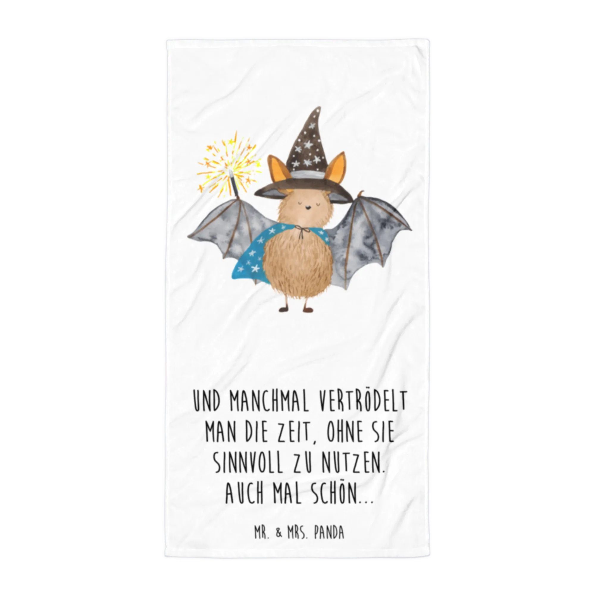 Das XL Badehandtuch Fledermaus Zauberer von Mr. & Mrs. Panda ist das perfekte Geschenk für Tierliebhaber und magische Seelen! Mit seinem einzigartigen Design, das eine süße Fledermaus zeigt, die mit einem Zauberstab zaubert, bringt dieses handgefertigte Handtuch Freude und gute Laune in jeden Haushalt.