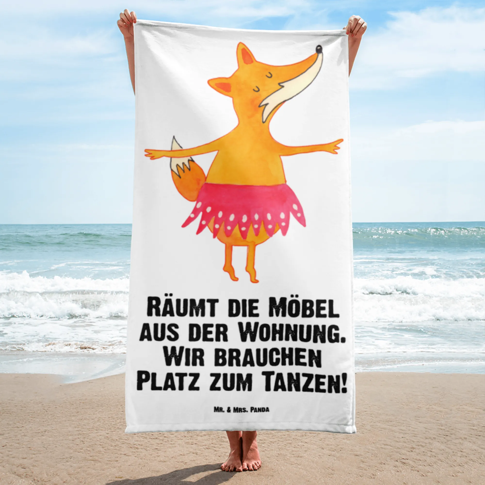 XL Badehandtuch Fuchs Ballerina - mit Spruch - Weiß