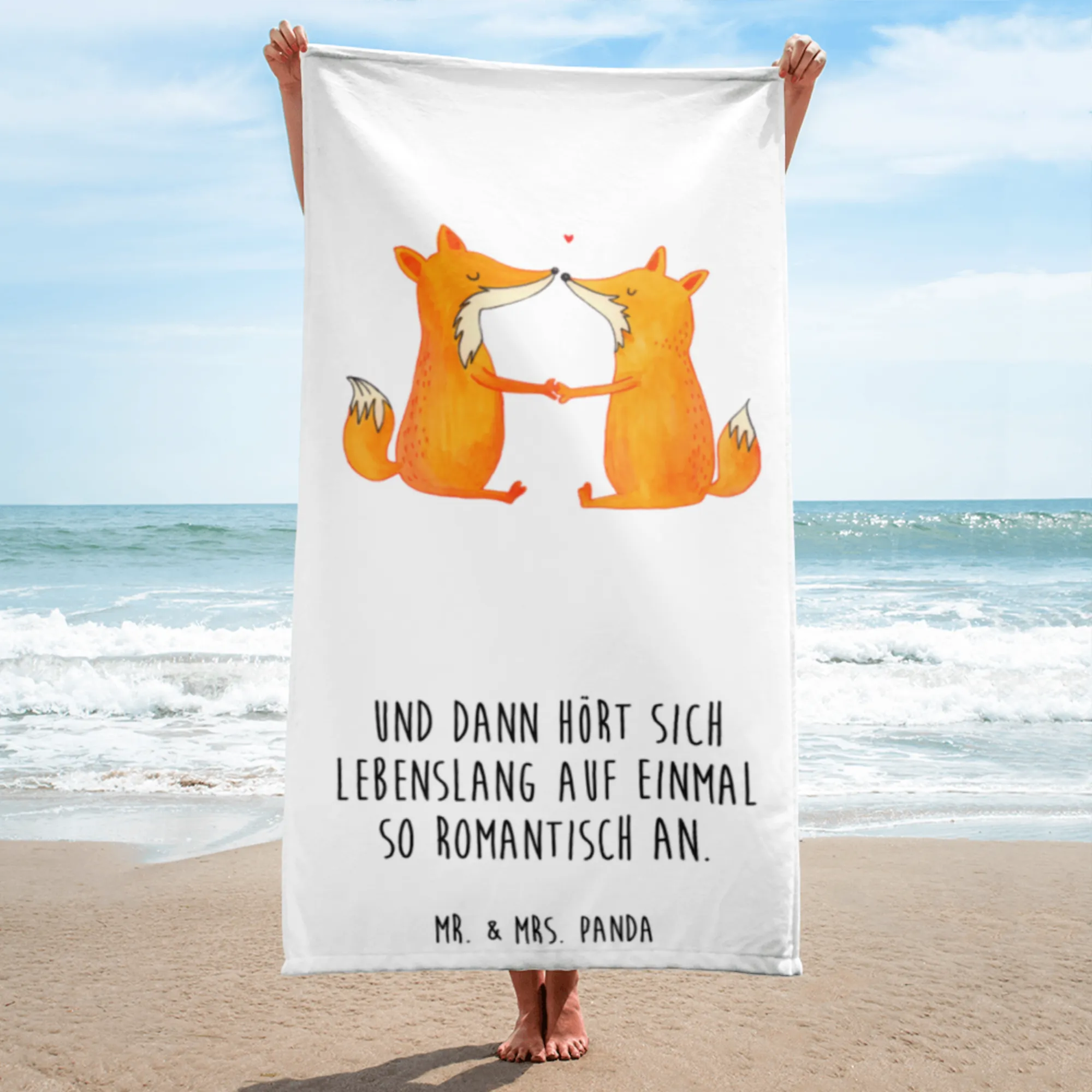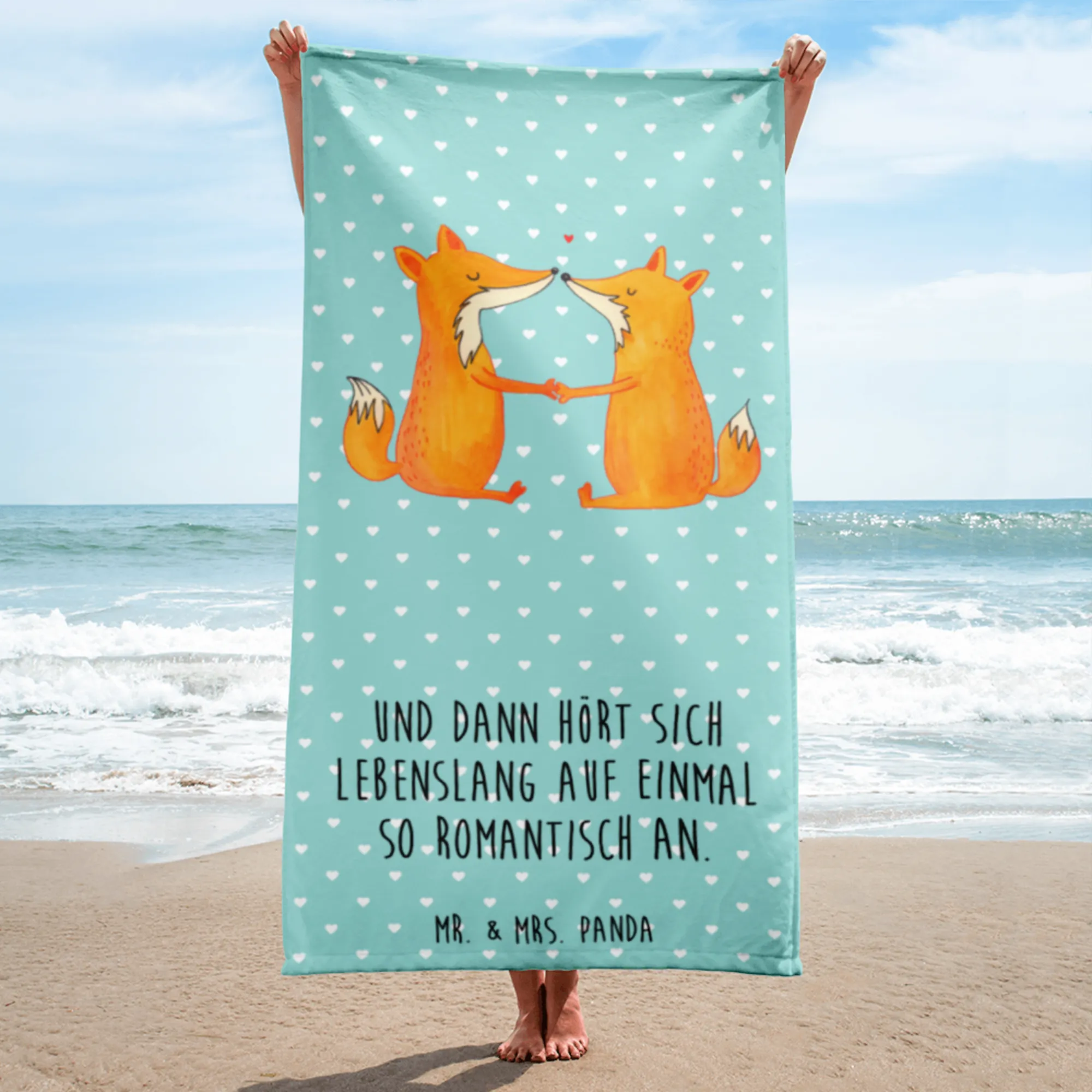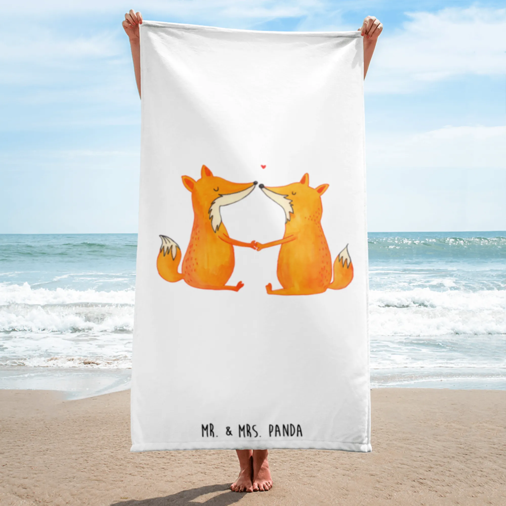 Hübsch, praktisch und voller Charme – das ist das XL Badehandtuch von Mr. & Mrs. Panda mit dem Motiv 'Füchse Liebe'.