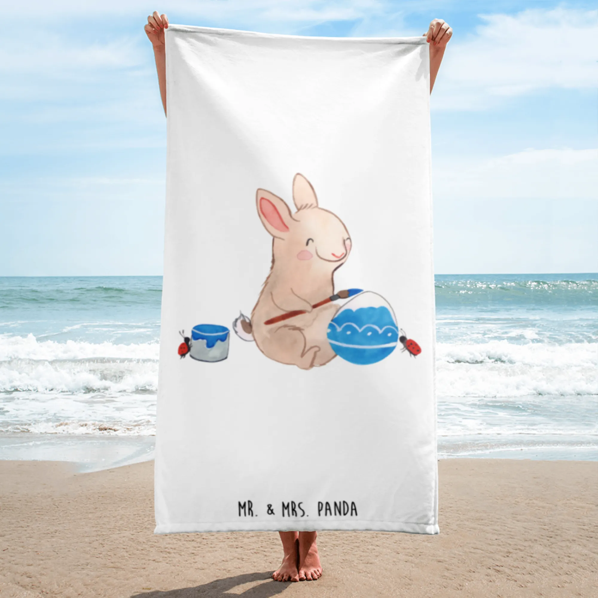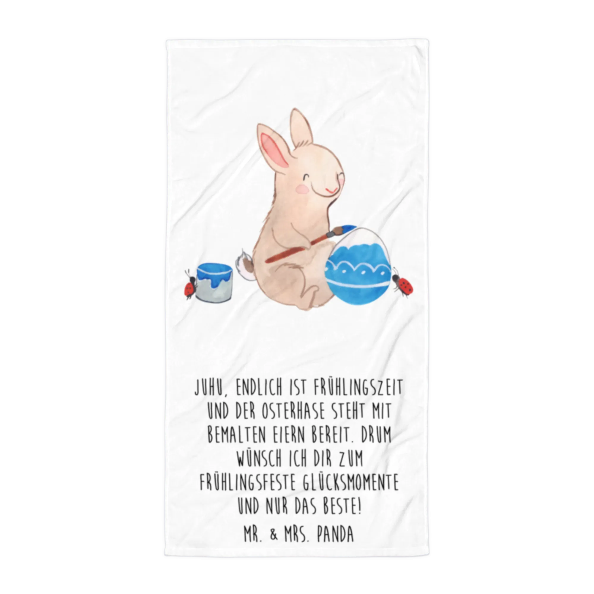 Das XL Badehandtuch Hase Marienkäfer von Mr. & Mrs. Panda ist der perfekte Begleiter für die Frühlingszeit und ein wunderbares Ostergeschenk! Mit einem kunterbunten Motiv, das einen fleißigen Osterhasen zeigt, der zusammen mit kleinen Marienkäfern Ostereier kunstvoll bemalt, bringt dieses Handtuch fröhliche Stimmung in dein Zuhause.