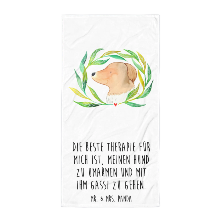 XL Badehandtuch Hund Blumen - mit Spruch - Weiß