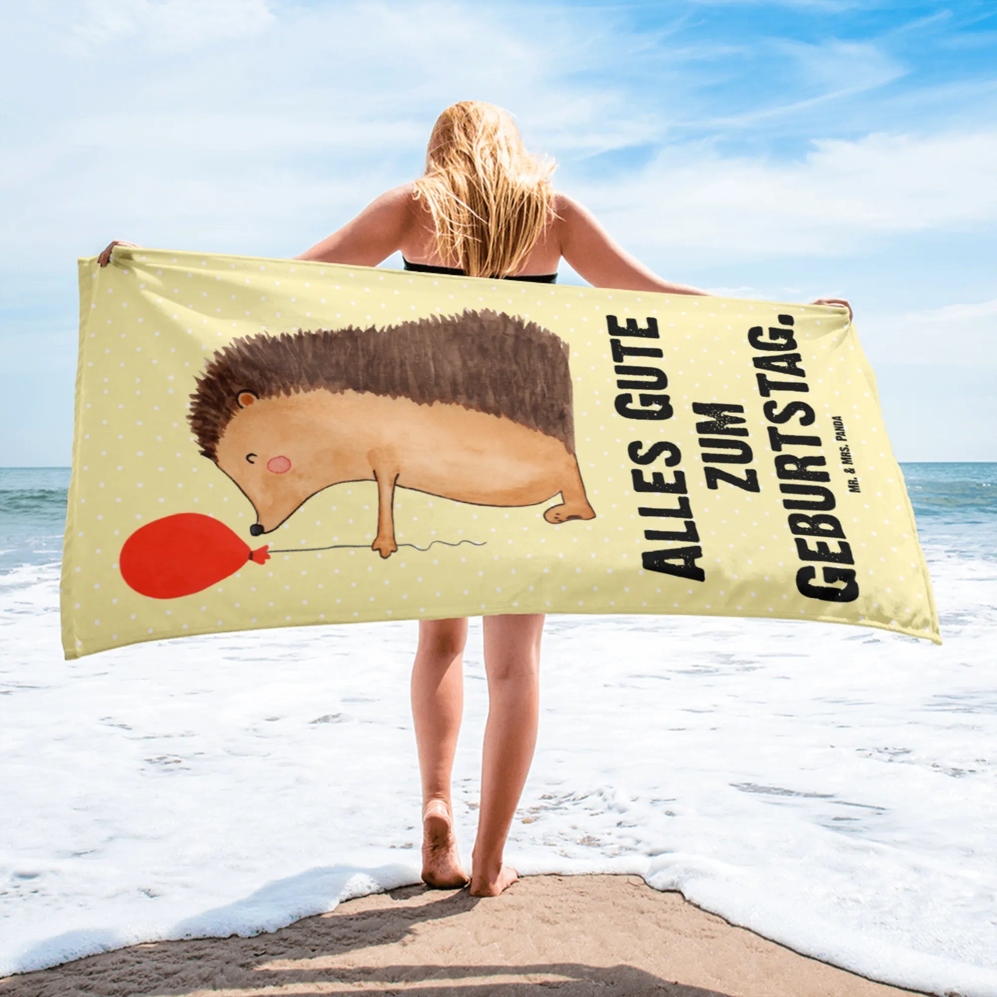 XL Badehandtuch Igel Luftballon - mit Spruch - Gelb Pastell